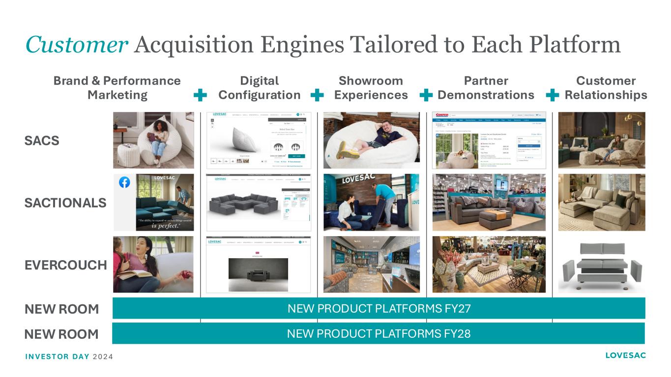 I N V ES T OR DA Y 2 0 2 4 Digital Configuration Showroom Experiences Partner Demonstrations Customer Relationships Customer Acquisition Engines Tailored to Each Platform NEW PRODUCT PLATFORMS FY27 NEW PRODUCT PLATFORMS FY28 SACTIONALS SACS EVERCOUCH Brand & Performance Marketing NEW ROOM NEW ROOM