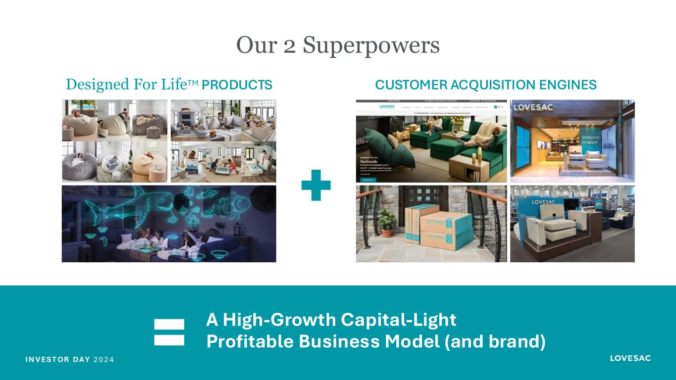 I N V ES T OR DA Y 2 0 2 4 Our 2 Superpowers A High-Growth Capital-Light Profitable Business Model (and brand) Designed For Life TM PRODUCTS CUSTOMER ACQUISITION ENGINES