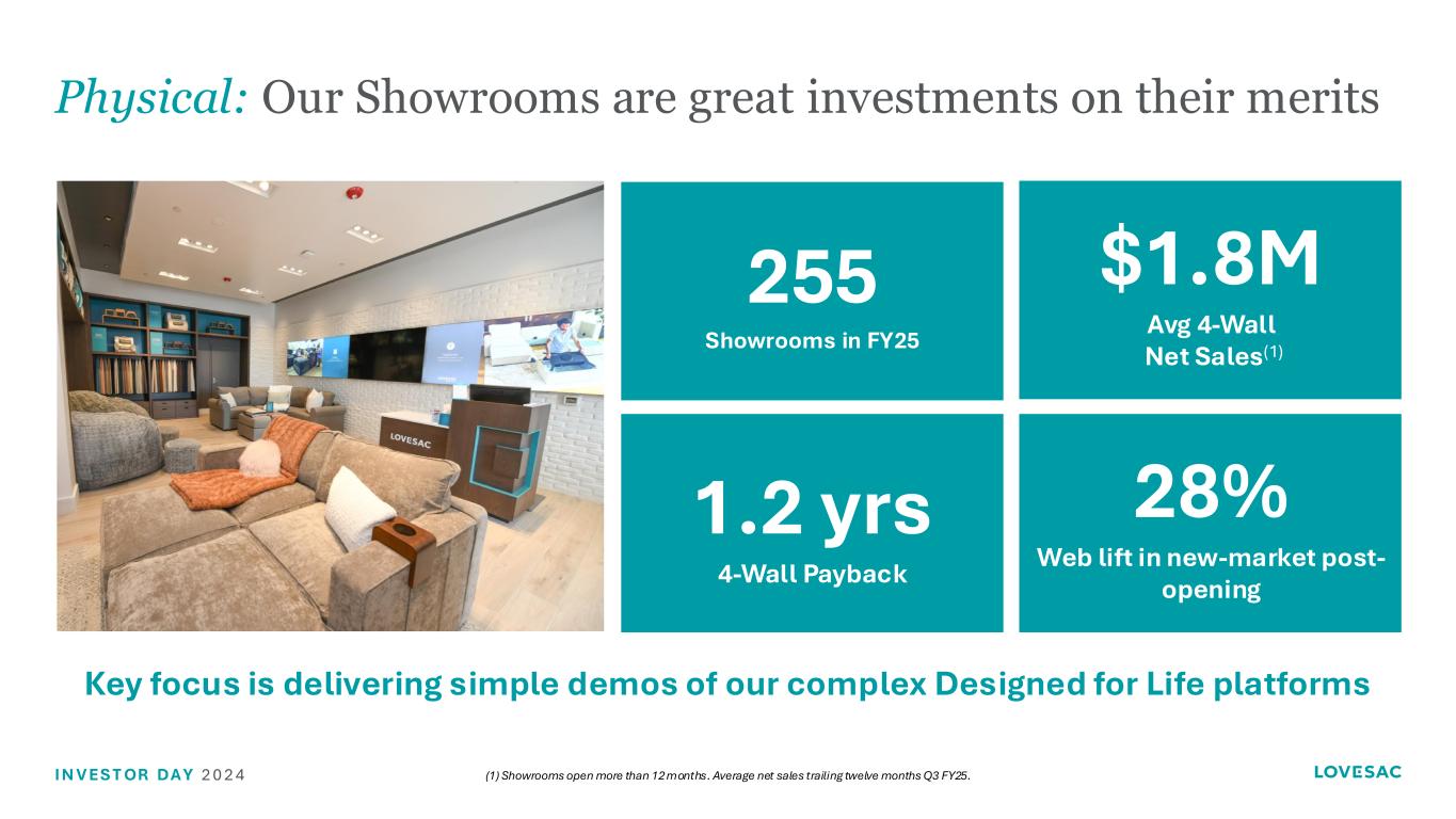I N V ES T OR DA Y 2 0 2 4 Physical: Our Showrooms are great investments on their merits Key focus is delivering simple demos of our complex Designed for Life platforms 1.2 yrs 4-Wall Payback 255 Showrooms in FY25 28% Web lift in new-market post- opening $1.8M Avg 4-Wall Net Sales(1) (1) Showrooms open more than 12 months. Average net sales trailing twelve months Q3 FY25.