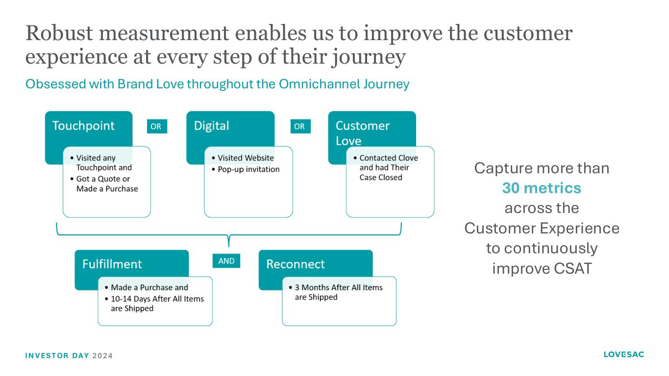 I N V ES T OR DA Y 2 0 2 4 Robust measurement enables us to improve the customer experience at every step of their journey Obsessed with Brand Love throughout the Omnichannel Journey Capture more than 30 metrics across the Customer Experience to continuously improve CSAT