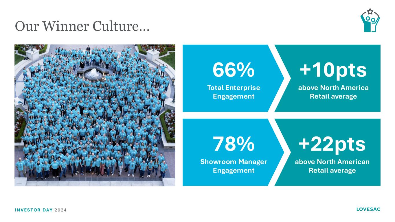 I N V ES T OR DA Y 2 0 2 4 +22pts above North American Retail average Our Winner Culture… 78% Showroom Manager Engagement +10pts above North America Retail average 66% Total Enterprise Engagement