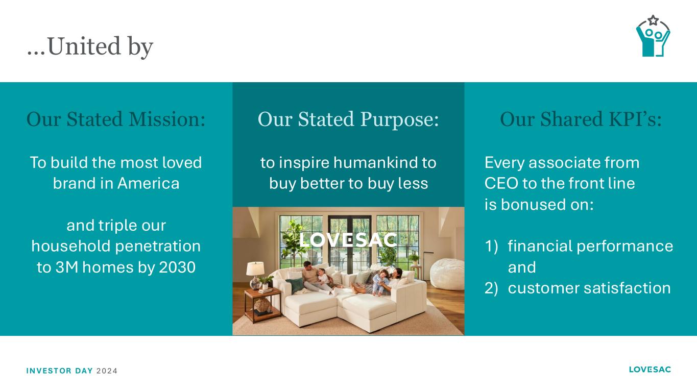 I N V ES T OR DA Y 2 0 2 4 Our Stated Mission: To build the most loved brand in America and triple our household penetration to 3M homes by 2030 …United by Our Stated Purpose: to inspire humankind to buy better to buy less Our Shared KPI’s: Every associate from CEO to the front line is bonused on: 1) financial performance and 2) customer satisfaction