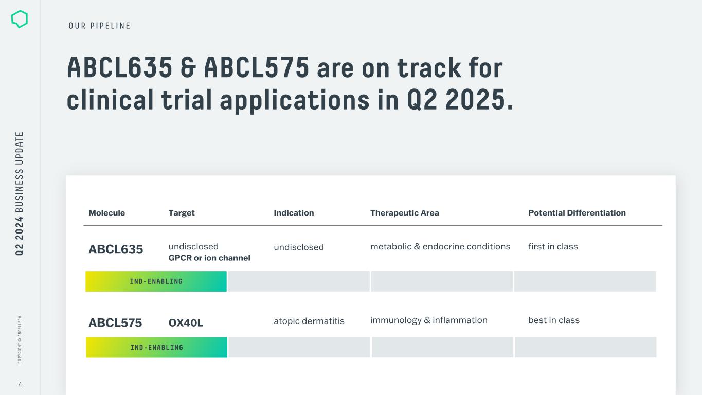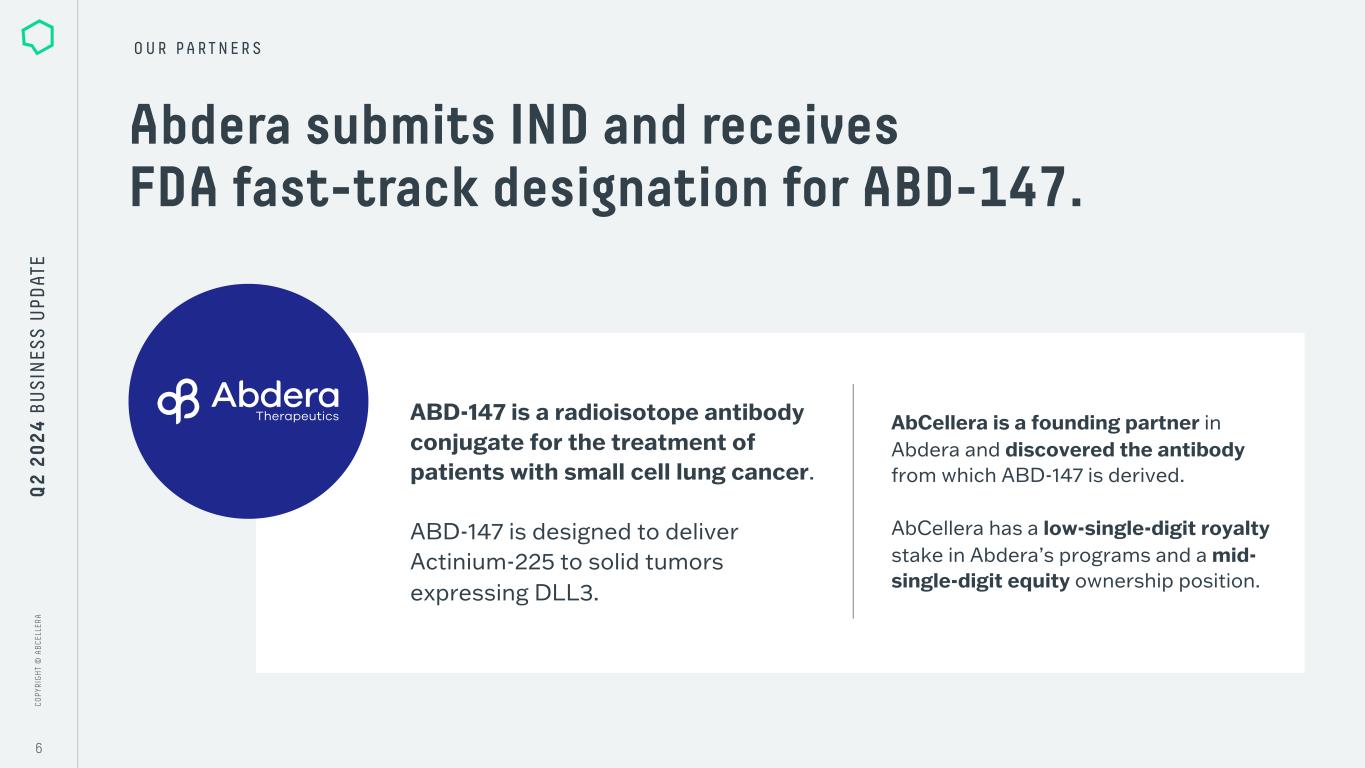 C O P Y R IG H T © A B C E LL E R A Q2 2024 BUSINESS UPDATE AUGUST 6, 2024