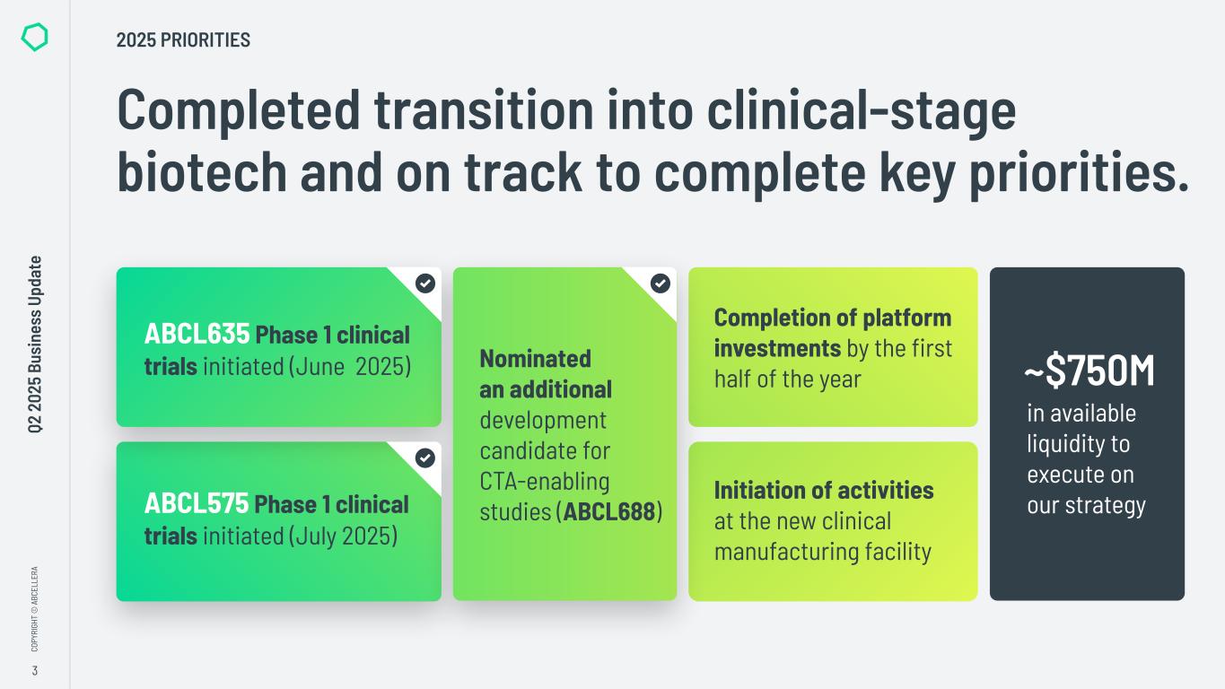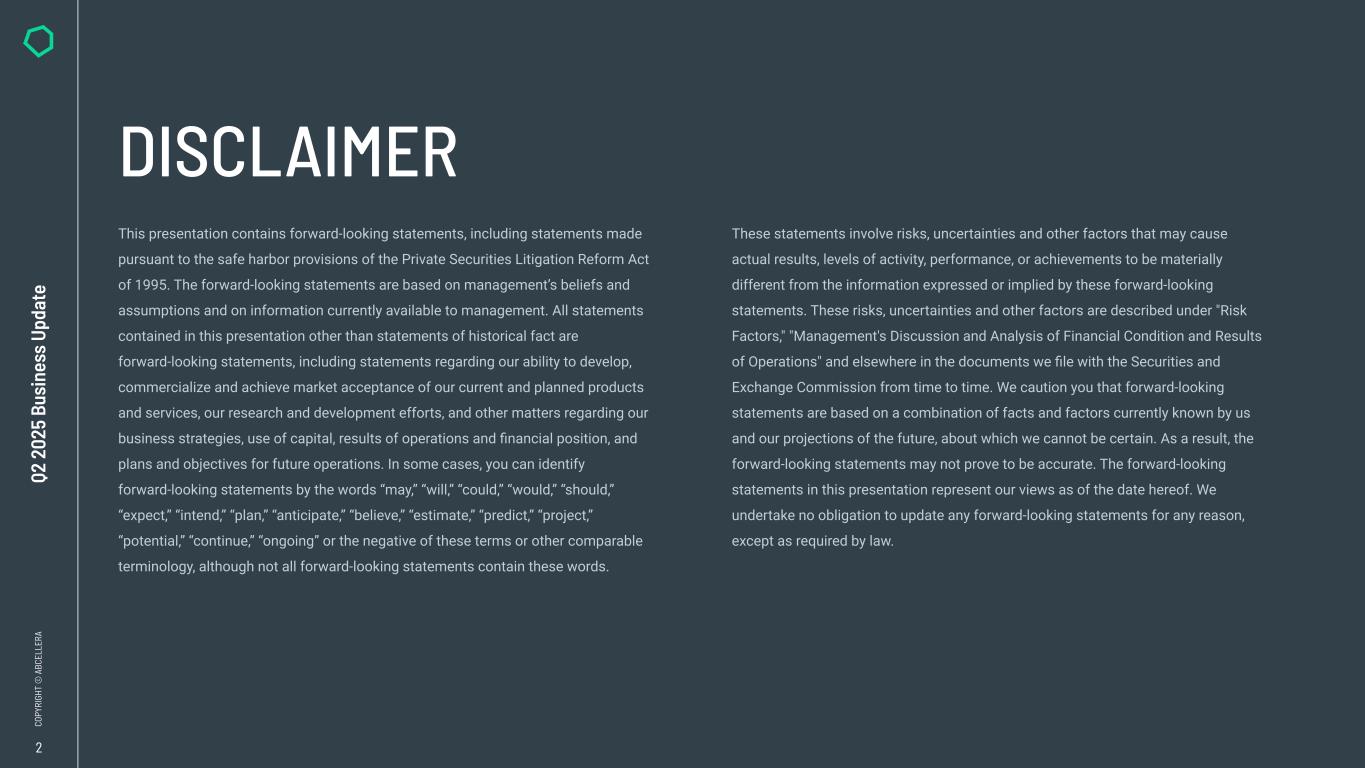 CO PY RI GH T © A BC EL LE RA August 7, 2025 Q2 2025 BUSINESS UPDATE