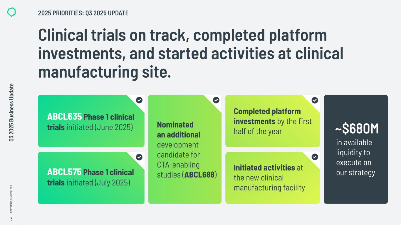 CO PY RI GH T © A BC EL LE RA November 6, 2025 Q3 2025 BUSINESS UPDATE
