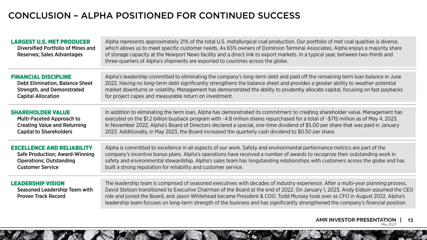 May 2023 ALPHA’S LEADERSHIP TEAM PRIORITIZES LONG-TERM STRENGTH OF THE BUSINESS 12