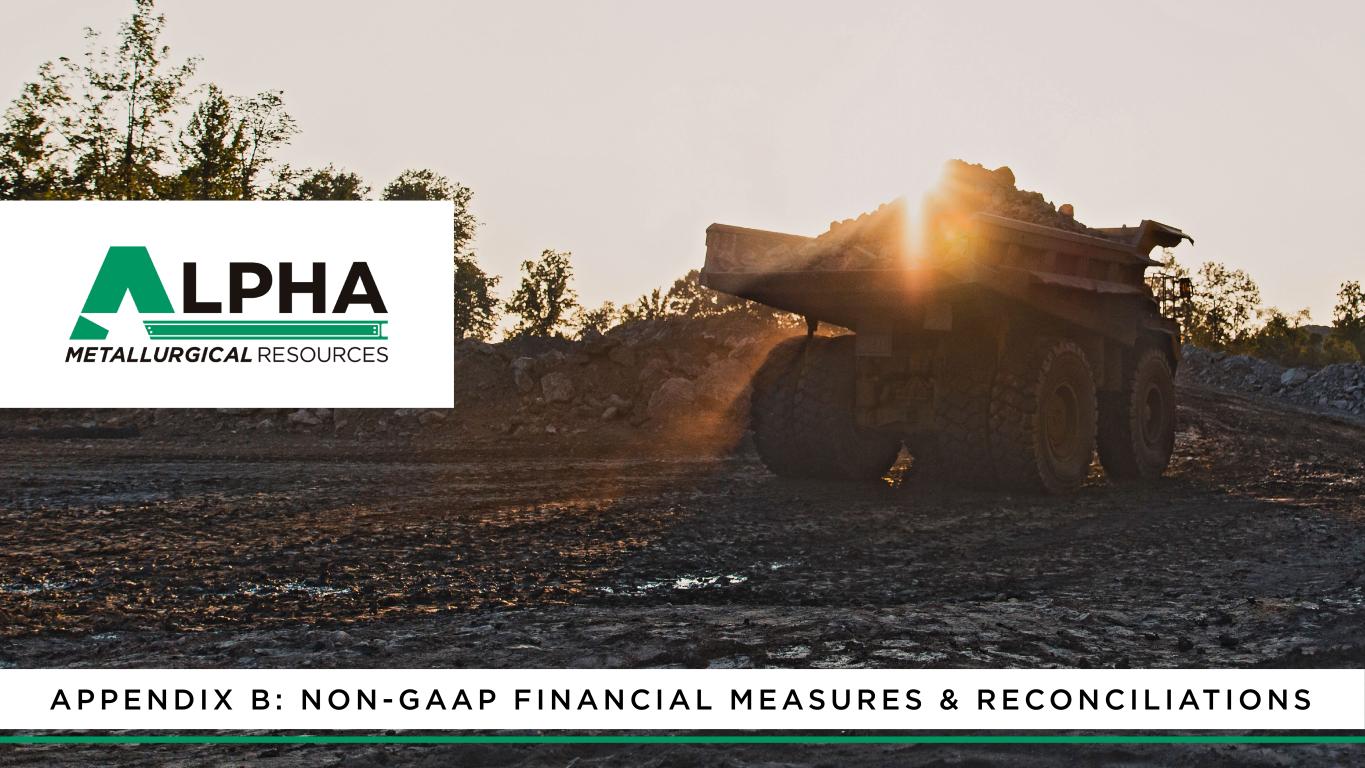 1 9A M R R a t i n g s A g e n c y P r e s e n t a t i o n J a n u a r y 2 0 2 5 |A M R I N V E S T O R P R E S E N T A T I O N N O V E M B E R $(71) $(28) $85 $1,300 $575 $349 2019 2020 2021 2022 2023 2024 $264 $83 $534 $1,741 $1,033 $408 2019 2020 2021 2022 2023 2024 17.2 15.5 16.8 16.4 17.1 17.1 2019 2020 2021 2022 2023 2024 H I S TO R I C A L F I N A N C I A L S U M M A RY Tons Sold (Million Tons) Revenue (US$bn) Adj. EBITDA (US$mm)2 Free Cash Flow (US$mm)4 Avg. Realized Price (US$/ton)1 Note: 2019 excludes discontinued operations. 1 Represents Non-GAAP coal sales realization per ton. Refer to Appendix for a reconciliation of this non-GAAP financial measure. 2 This is a non-GAAP financial measure. A reconciliation of Net Income to Adjusted EBITDA is included in Appendix. 3 Represents Adjusted EBITDA divided by Total Revenues. Refer to Appendix for a reconciliation of this non-GAAP financial measure. 4 Represents Free Cash Flow. Refer to Appendix for a reconciliation of this non-GAAP financial measure. 5 Represents Free Cash Flow Conversion. Refer to Appendix for a reconciliation of this non-GAAP financial measure. Margin (%)3 FCF Conversion (%)5 $2.0 $1.4 $2.3 $4.1 $3.5 $2.9 2019 2020 2021 2022 2023 2024 $77 $111 $177 $143 13% 6% 24% 42% 30% 14% 16% 75% 56% 85%(27)% (34)% $218$100