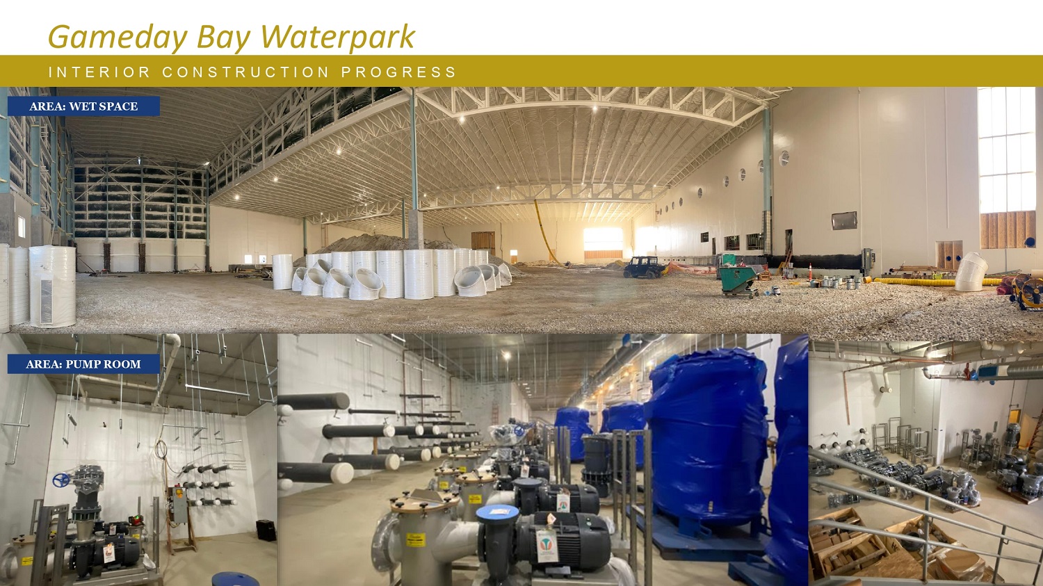 Gameday Bay Waterpark I N T E R I O R C O N S T R U C T I O N P R O G R E S S 5 AREA: WET SPACE AREA: PUMP ROOM