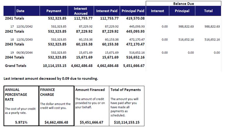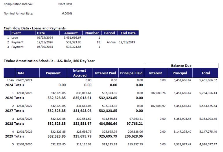 PAYMENT. Borrower will pay the entire outstanding principal balance to Lender on June 30, 2044, the “Maturity Date”. Commencing June 25, 2024 and continuing until December 31, 2026, interest shall accrue but not be paid by Borrower absent the occurrence of an Event of Default. Commencing December 31, 2026, Borrower shall pay regular annual payments of principal and accrued interest in the amounts set forth on the attached amortization schedule with each annual payment to be due and paid on December 31st of each year until Borrower’s final payment becomes due on the Maturity Date, which payment will be for all principal, accrued and unpaid interest, and all other amounts that may be due and owing to Lender under the First Amendment to Business Loan Agreement (“First Amendment to Loan Agreement”), this Amended and Restated Promissory Note (“Amended and Restated Note,” and collectively with the First Amendment to Loan “Loan Documents”). Prior to an Event of Default under Loan Documents, payments shall be applied first to interest, then to principal, then to any fees or other amounts due and owing to Lender in connection with the Indebtedness. After an Event of Default under the Loan Documents, unless required by applicable law, payments shall be applied by Lender in such order as it elects in its sole discretion. The annual interest rate for this Amended and Restated Note is computed on a 365/360 basis; that is, in the case of interest, by applying the ratio of the interest rate over a year of 360 days, multiplied by the outstanding principal balance, multiplied by the actual number of days the principal balance is outstanding. Any reference in this Amended and Restated Note to a “per annum” rate shall be based on a year of 360 days. Borrower will pay Lender at Lender’s address shown above or at such other place as Lender may designate in writing.