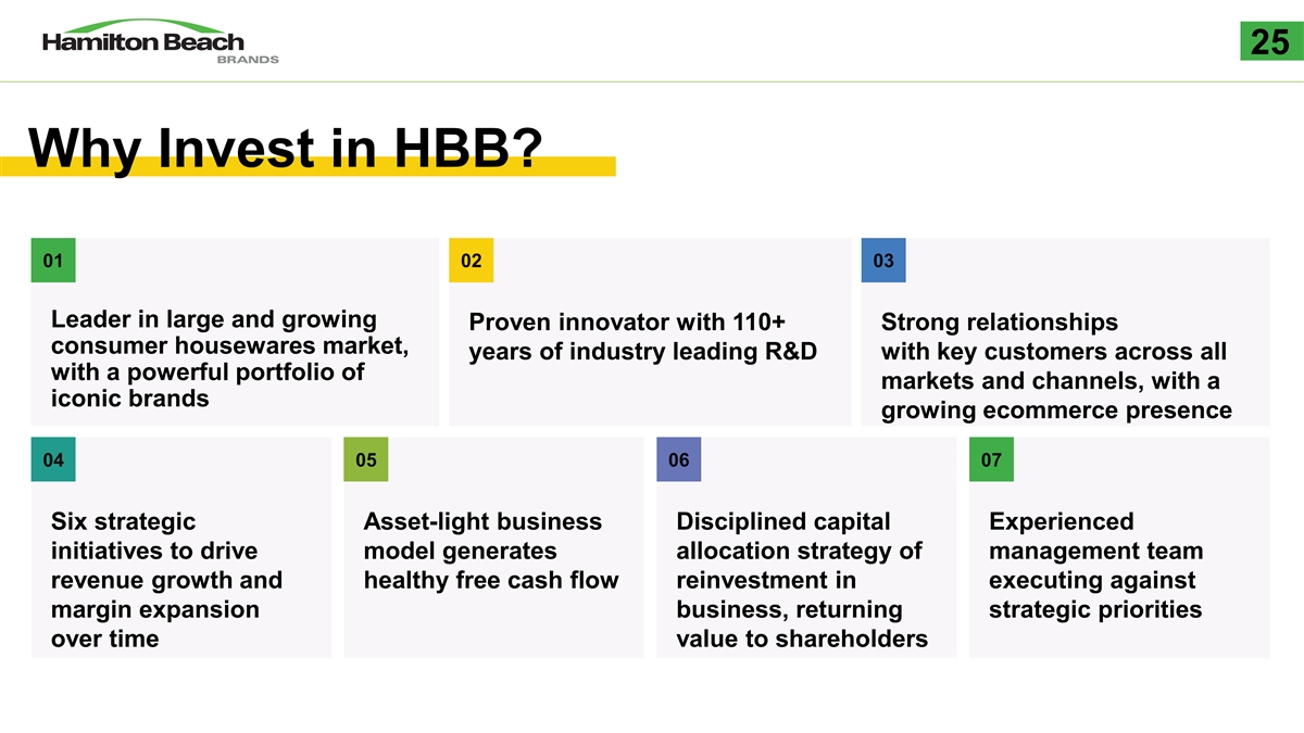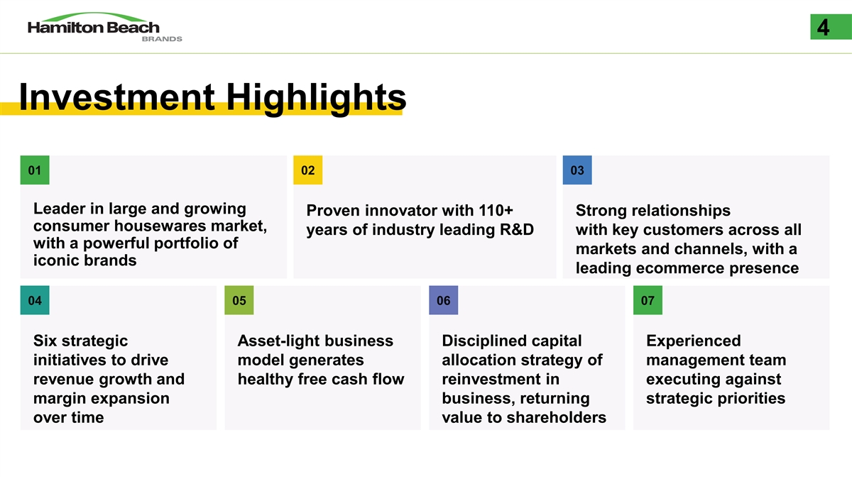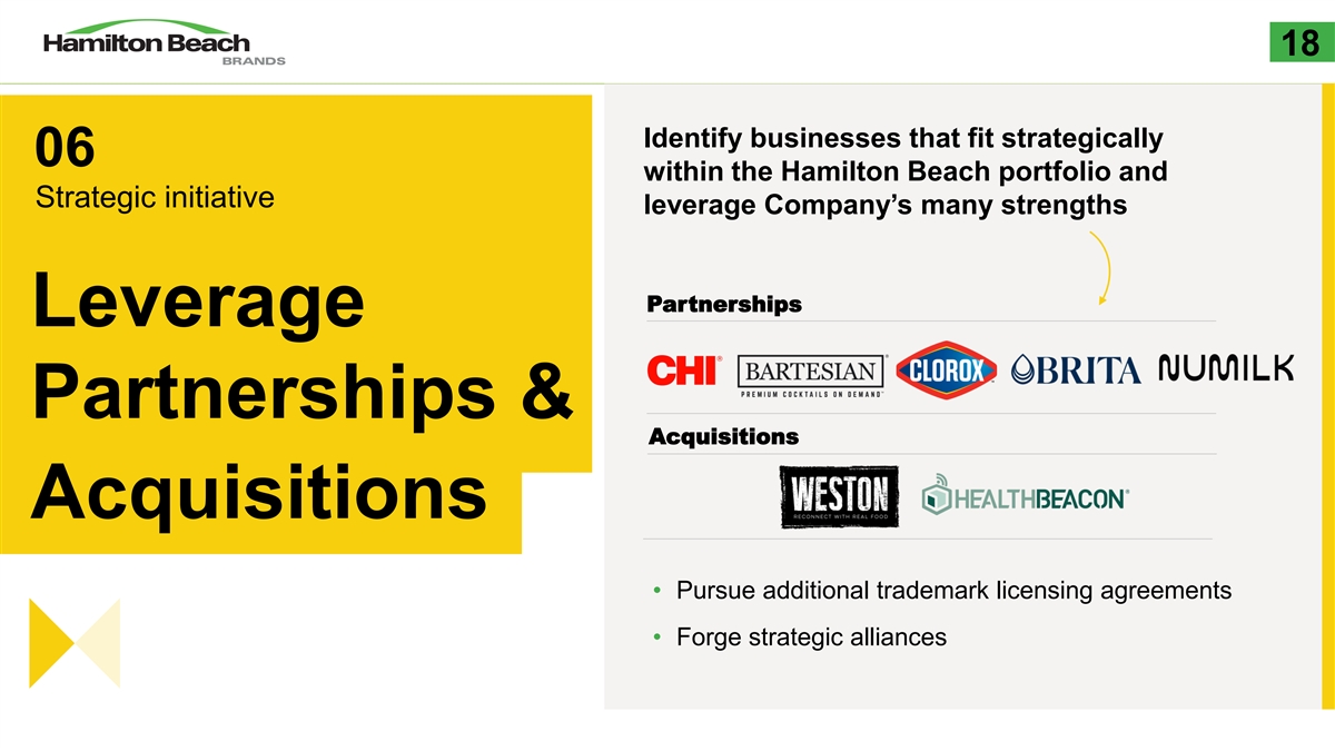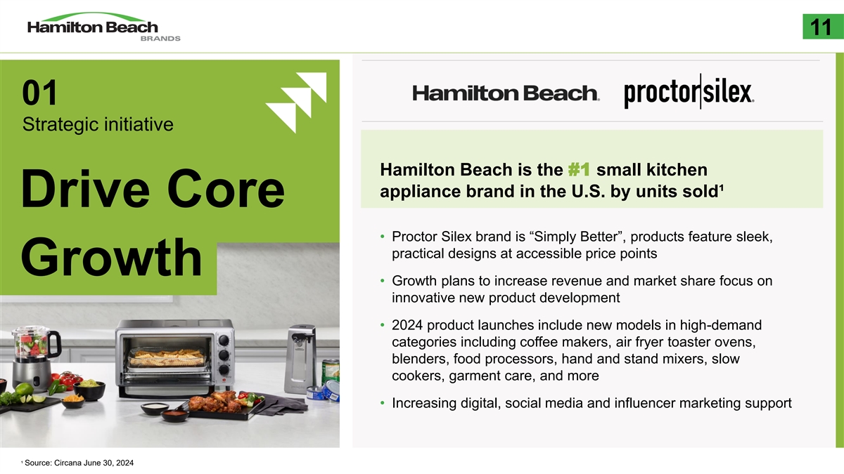 10 Strategic Growth Initiatives 01. Drive Core Growth 02. Gain Share in the Premium Market Core Premium Leverage Partnerships and 03. Lead in Global Commercial Market Acquisitions Customer Focused Accelerate Digital 04. Accelerate Growth of Hamilton Beach Health Transformation Health Commercial 05. Accelerate Digital Transformation 06. Leverage Partnerships and Acquisitions