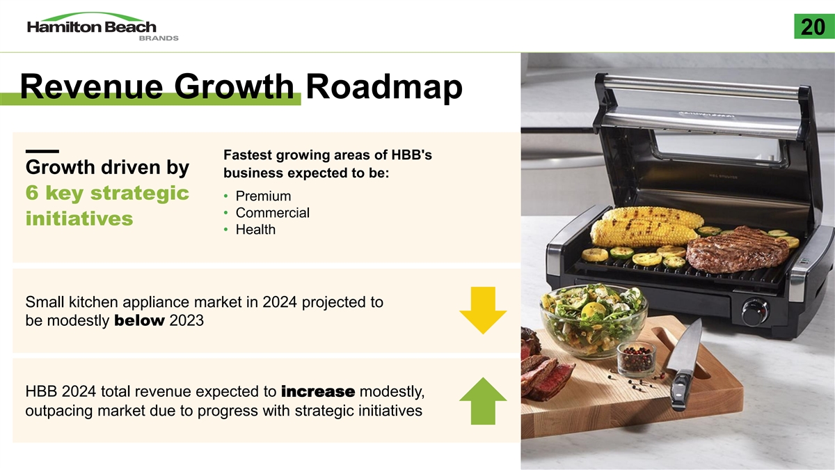 20 Revenue Growth Roadmap Fastest growing areas of HBB's Growth driven by business expected to be: 6 key strategic • Premium • Commercial initiatives • Health Small kitchen appliance market in 2024 projected to be modestly below 2023 HBB 2024 total revenue expected to increase modestly, outpacing market due to progress with strategic initiatives
