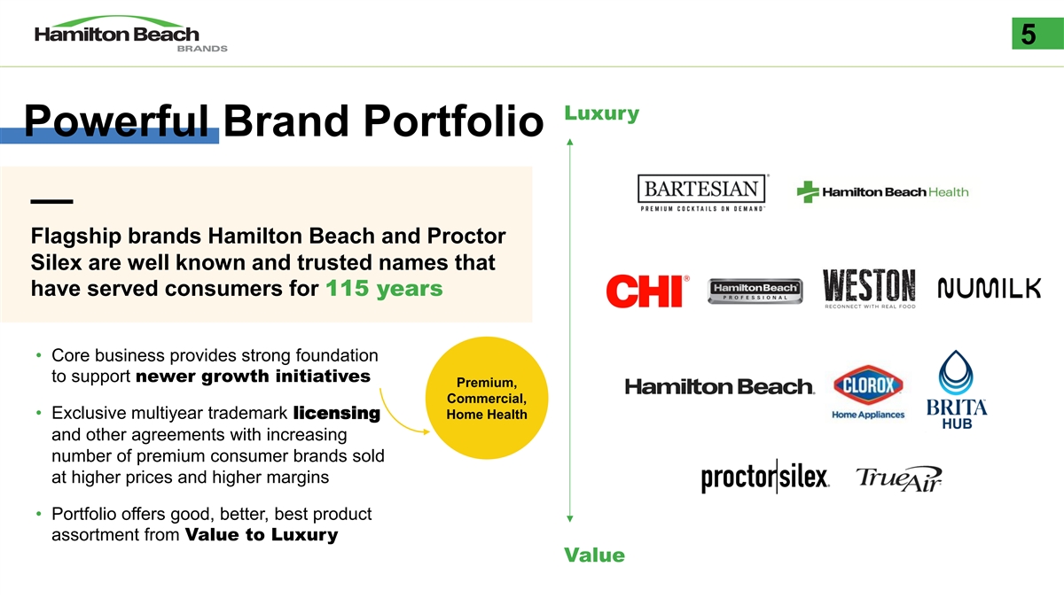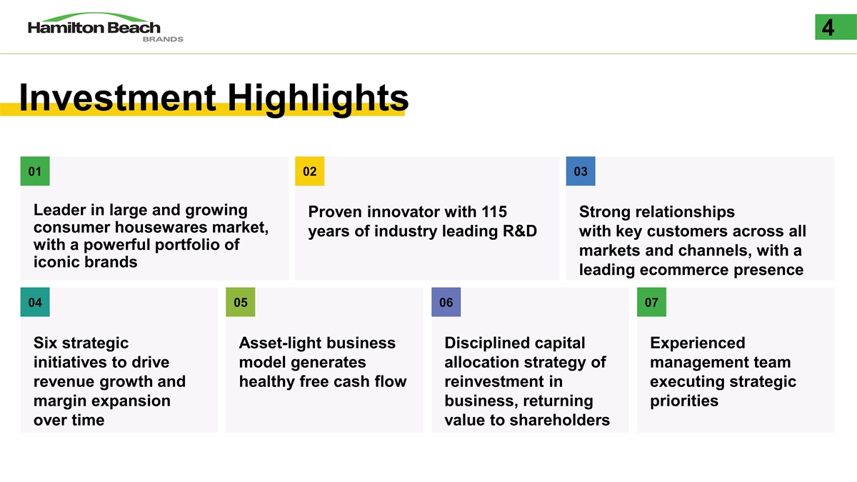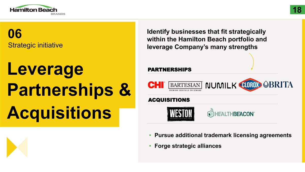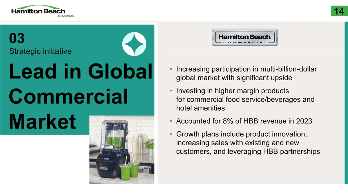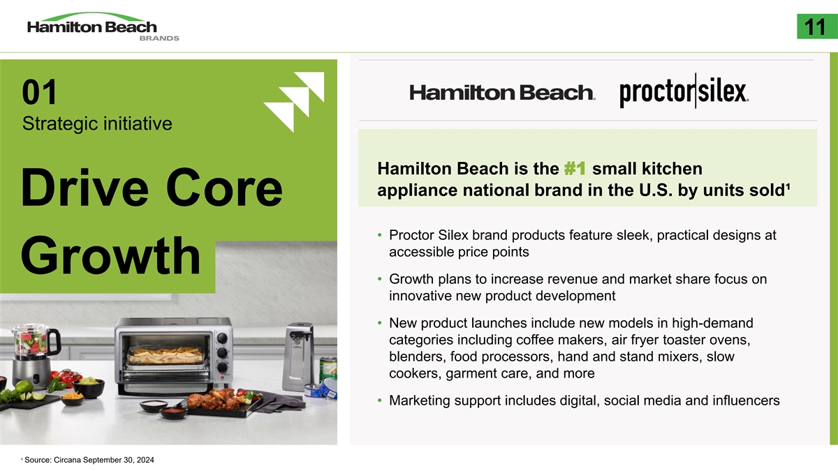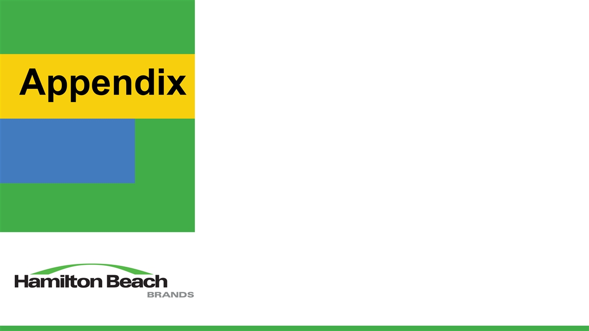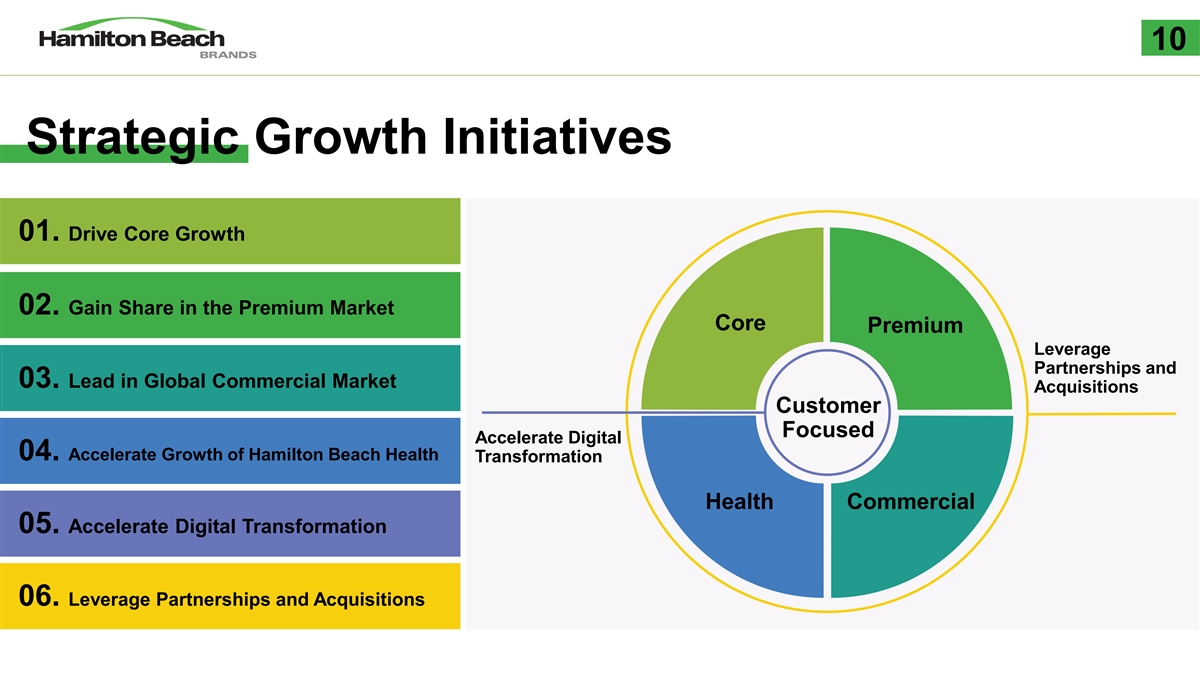 10 Strategic Growth Initiatives 01. Drive Core Growth 02. Gain Share in the Premium Market Core Premium Leverage Partnerships and 03. Lead in Global Commercial Market Acquisitions Customer Focused Accelerate Digital 04. Accelerate Growth of Hamilton Beach Health Transformation Health Commercial 05. Accelerate Digital Transformation 06. Leverage Partnerships and Acquisitions