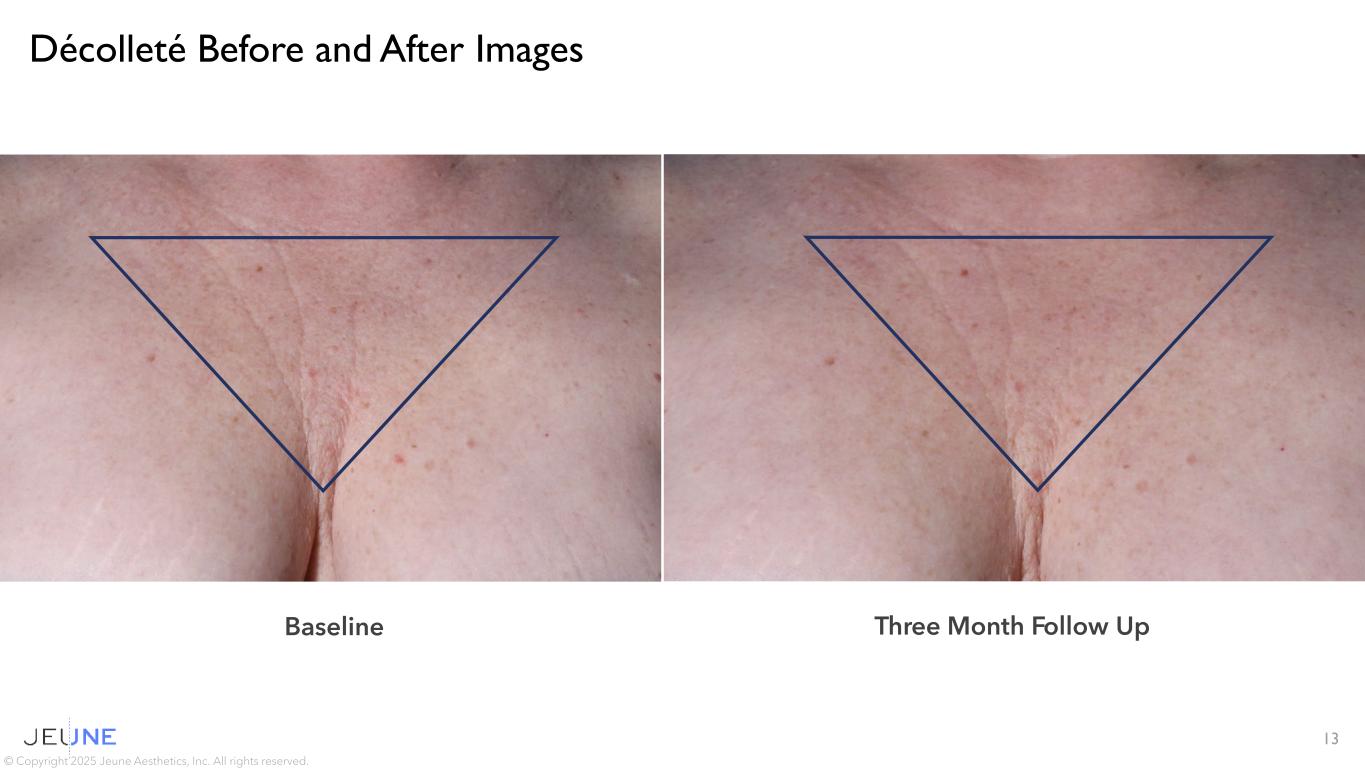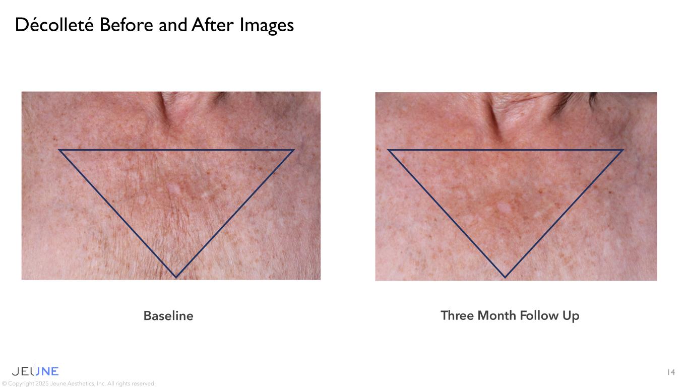 Décolleté Before and After Images 13 © Copyright 2025 Jeune Aesthetics, Inc. All rights reserved. Baseline Three Month Follow Up
