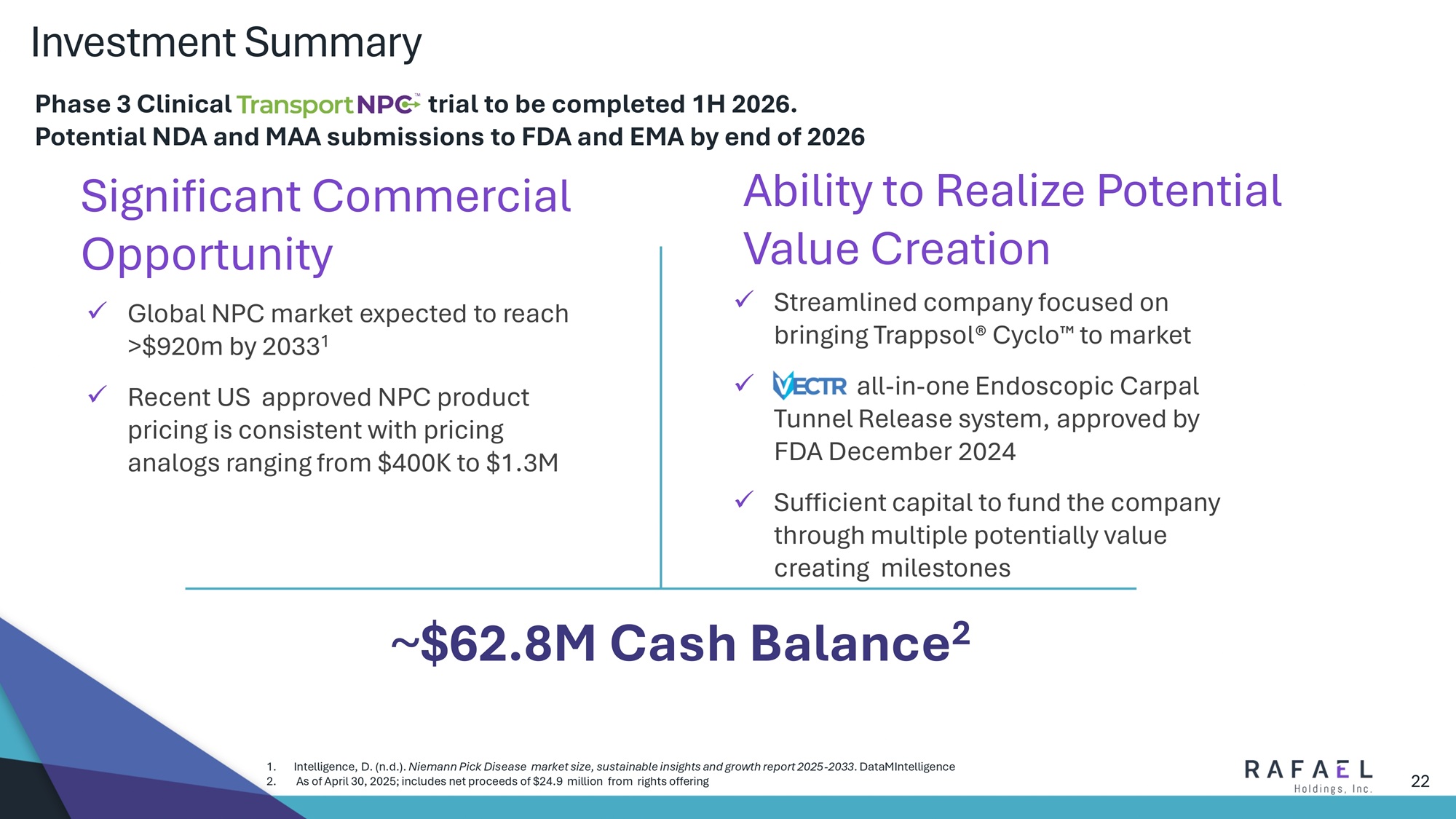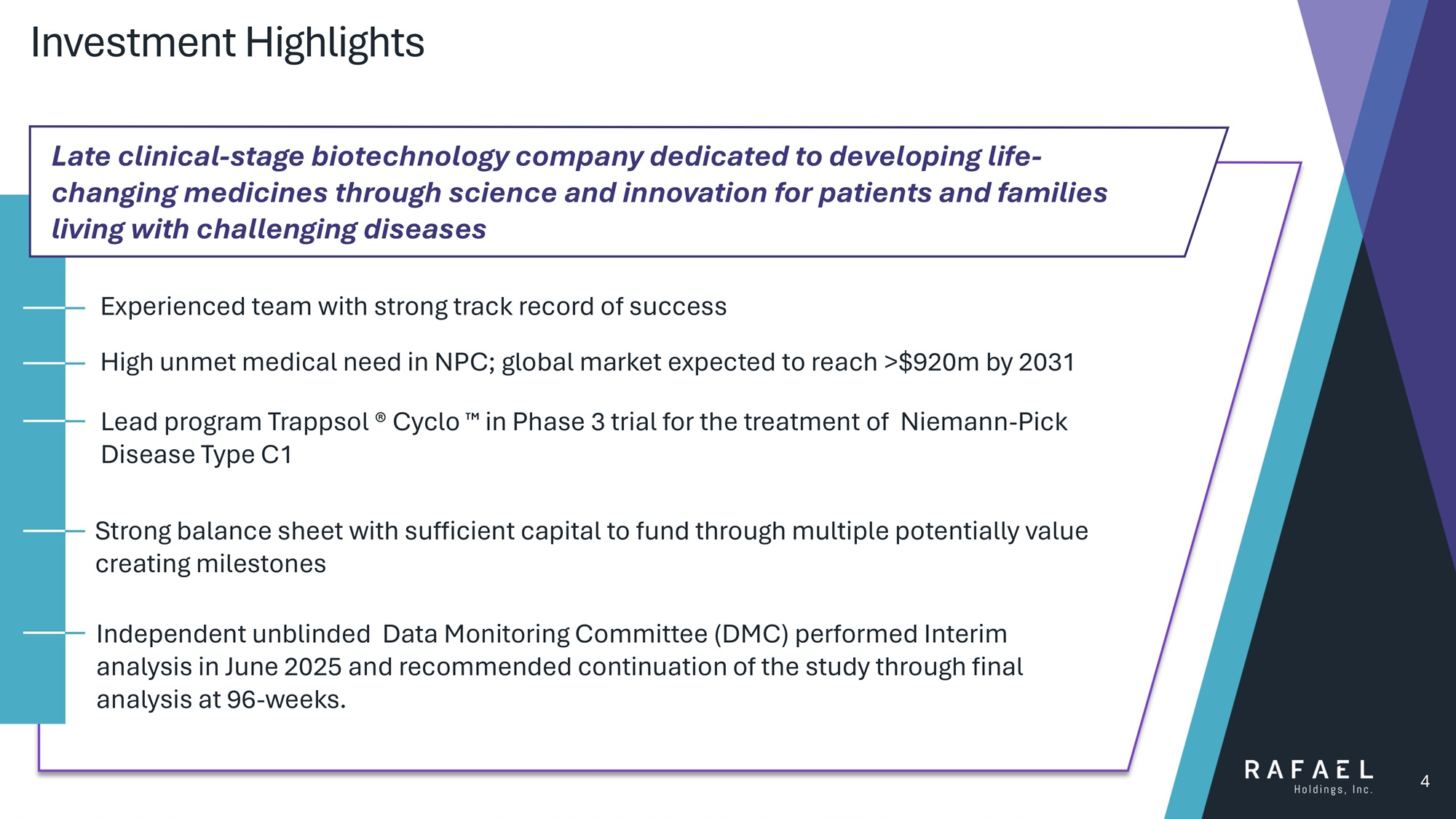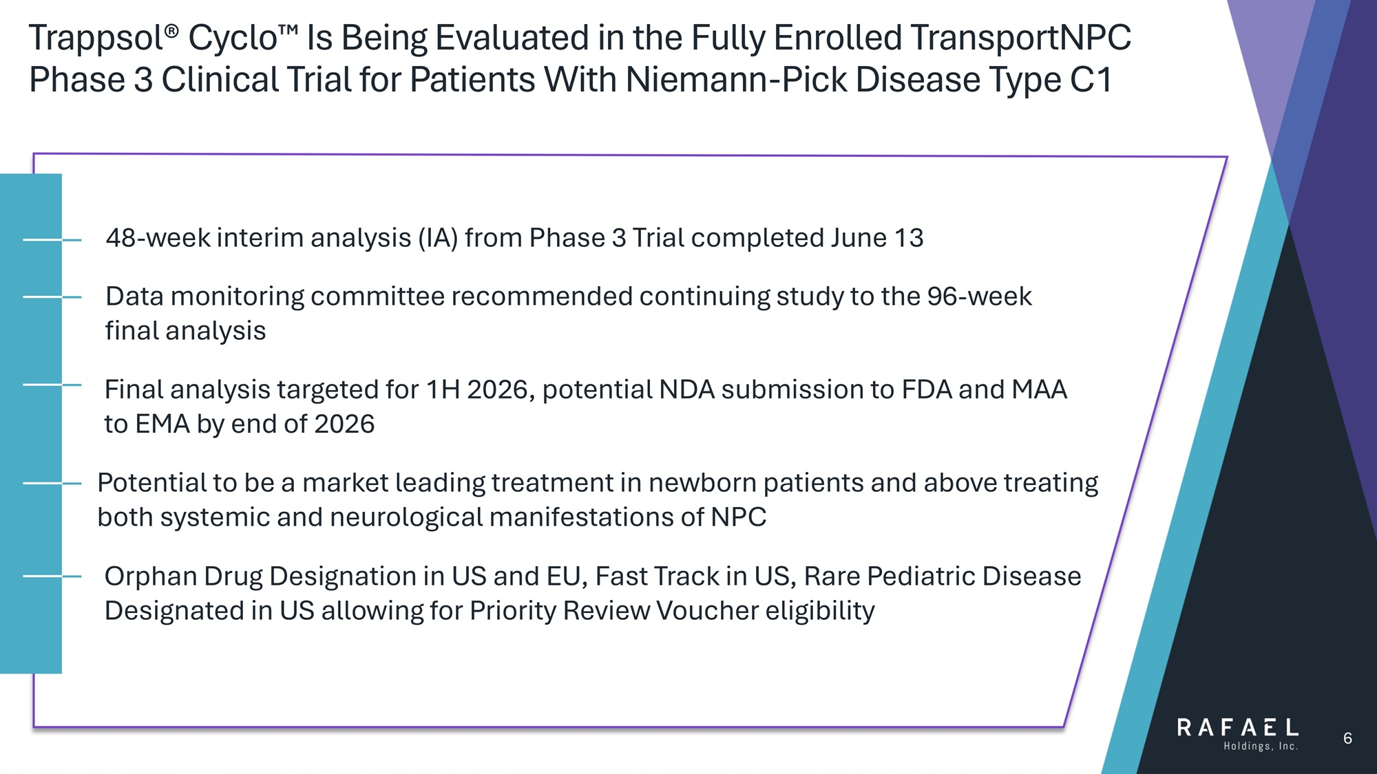 Clinical Drug Development Trappsol ® Cyclo 3 Focused on Bringing Trappsol ® Cyclo to Market Real Estate Holding Medical Devices Rafael Holdings, Inc. NYSE: RFL / NYSE American: RFLW