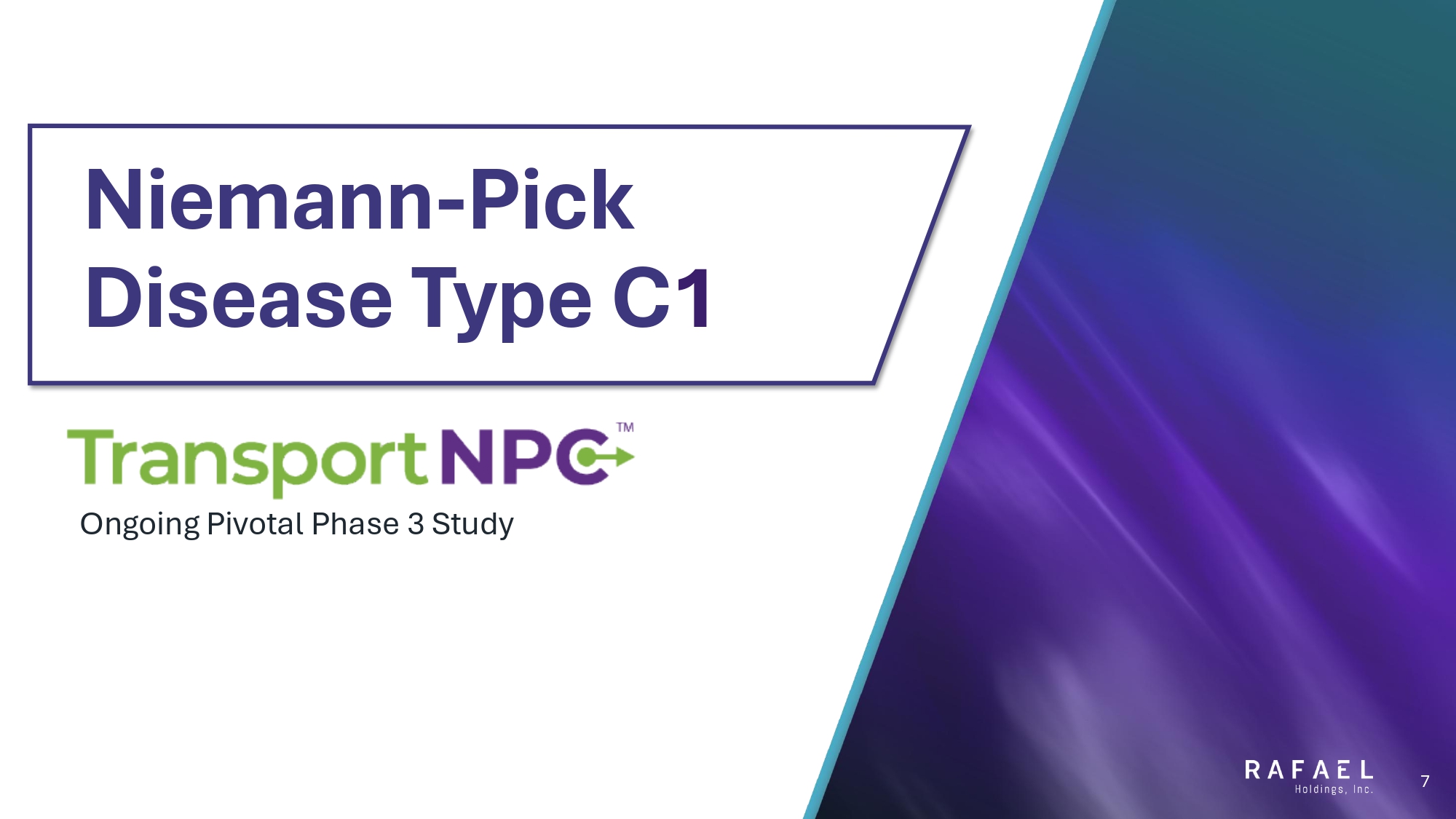 6 Trappsol® Cyclo Is Being Evaluated in the Fully Enrolled TransportNPC Phase 3 Clinical Trial for Patients With Niemann - Pick Disease Type C1 48 - week interim analysis (IA) from Phase 3 Trial completed June 13 Data monitoring committee recommended continuing study to the 96 - week final analysis Final analysis targeted for 1H 2026, potential NDA submission to FDA and MAA to EMA by end of 2026 Potential to be a market leading treatment in patients newborn and above treating both systemic and neurological manifestations of NPC Orphan Drug Designation in US and EU, Fast Track in US, Rare Pediatric Disease Designated in US allowing for Priority Review Voucher eligibility
