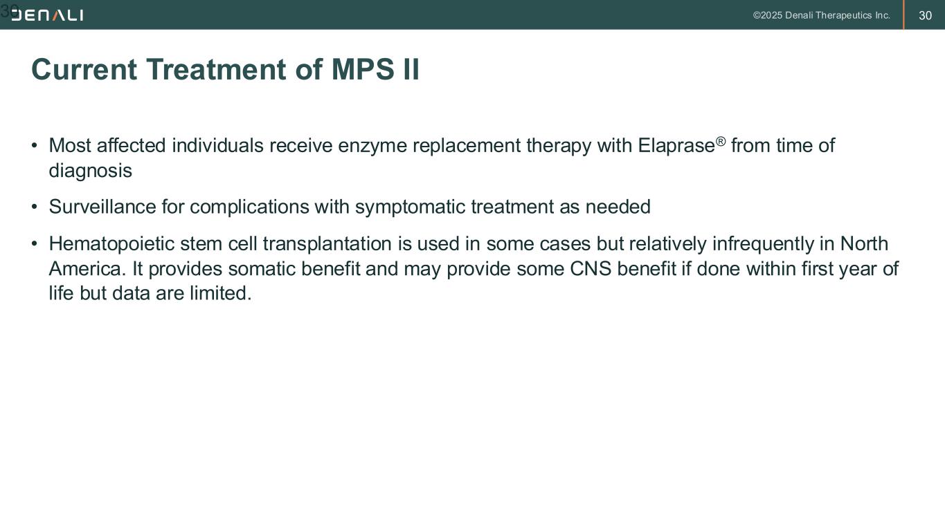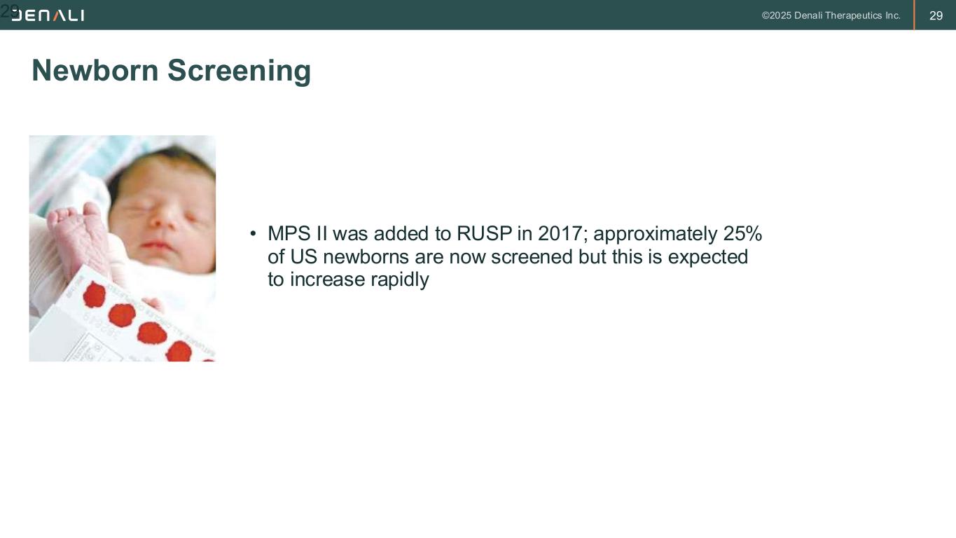 29 Newborn Screening 29 • MPS II was added to RUSP in 2017; approximately 25% of US newborns are now screened but this is expected to increase rapidly