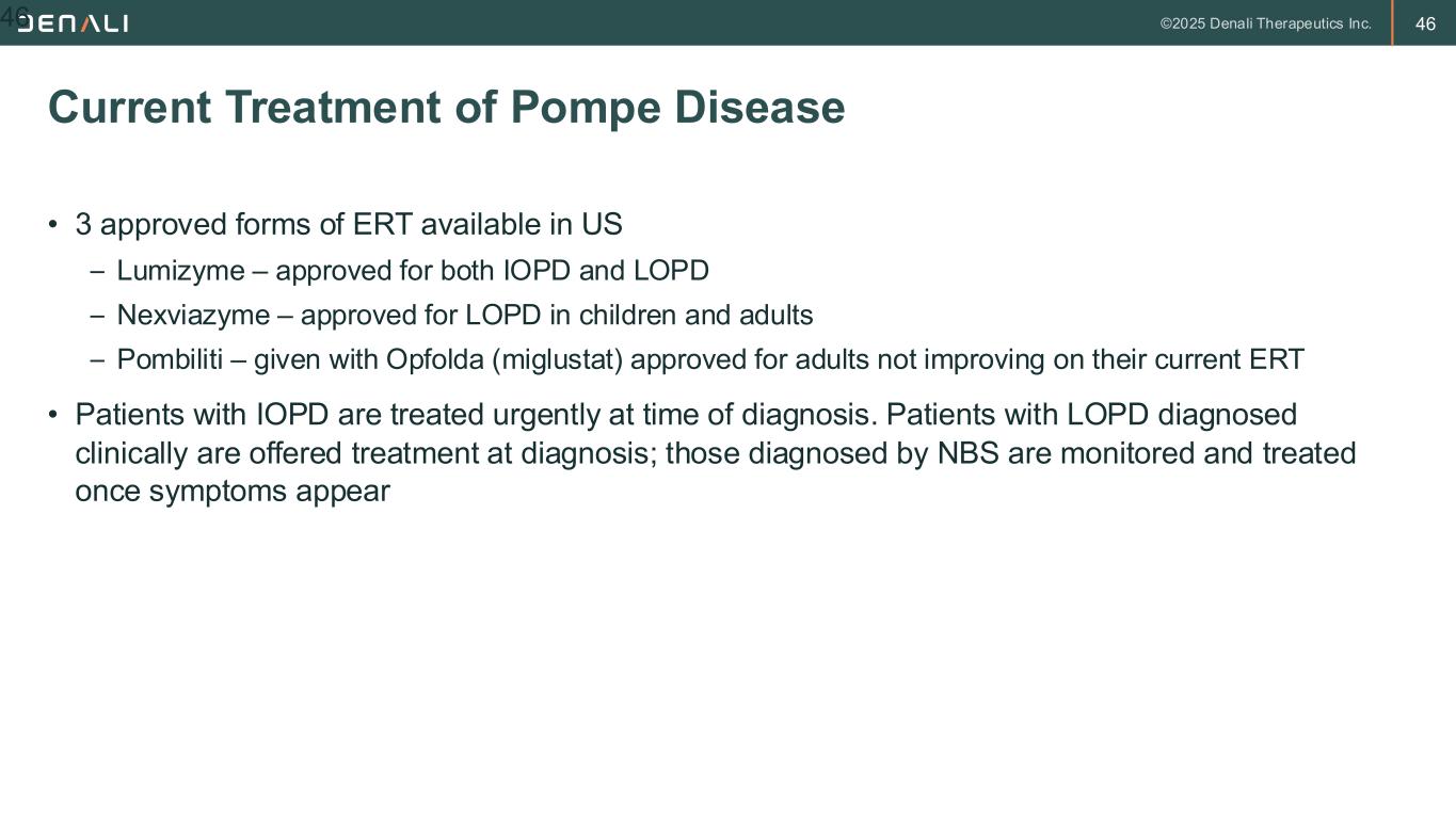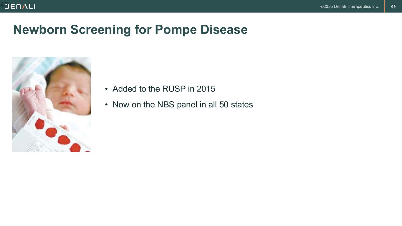 45 Newborn Screening for Pompe Disease 45 • Added to the RUSP in 2015 • Now on the NBS panel in all 50 states