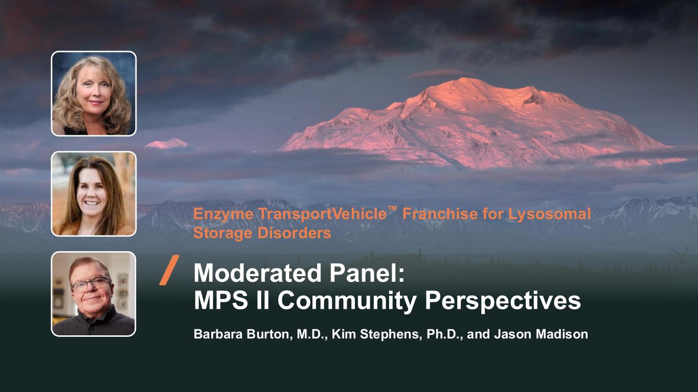 81 Enzyme TransportVehicle Franchise for Lysosomal Storage Disorders Moderated Panel: MPS II Community Perspectives Barbara Burton, M.D., Kim Stephens, Ph.D., and Jason Madison