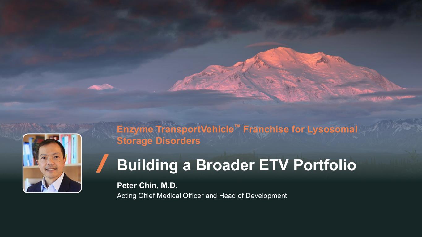 82 Enzyme TransportVehicle Franchise for Lysosomal Storage Disorders Building a Broader ETV Portfolio Peter Chin, M.D. Acting Chief Medical Officer and Head of Development