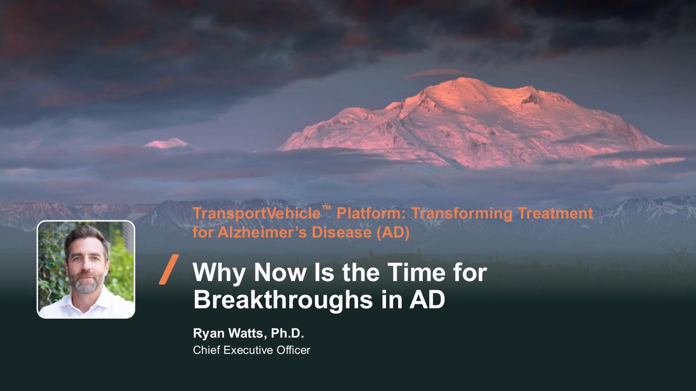 92 TransportVehicle Platform: Transforming Treatment for Alzheimer’s Disease (AD) Why Now Is the Time for Breakthroughs in AD Ryan Watts, Ph.D. Chief Executive Officer