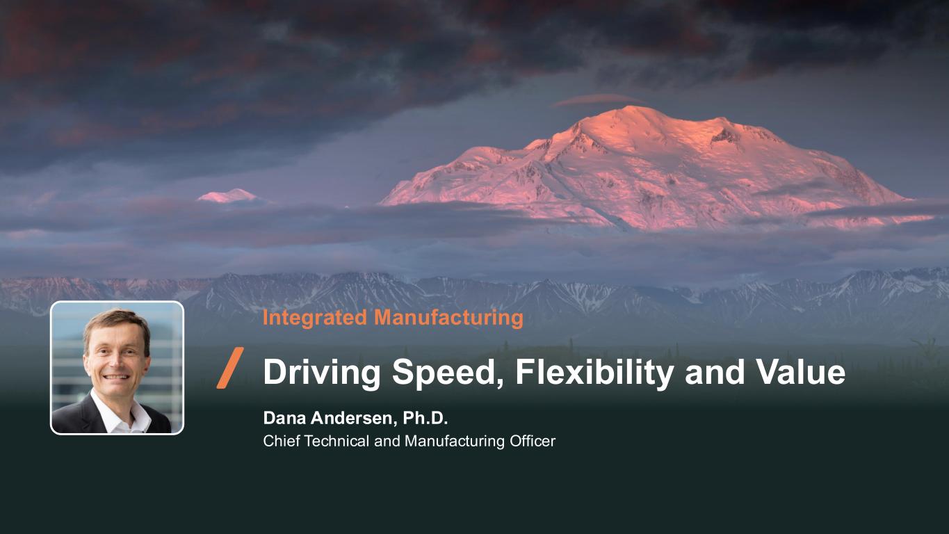 119 Integrated Manufacturing Driving Speed, Flexibility and Value Dana Andersen, Ph.D. Chief Technical and Manufacturing Officer