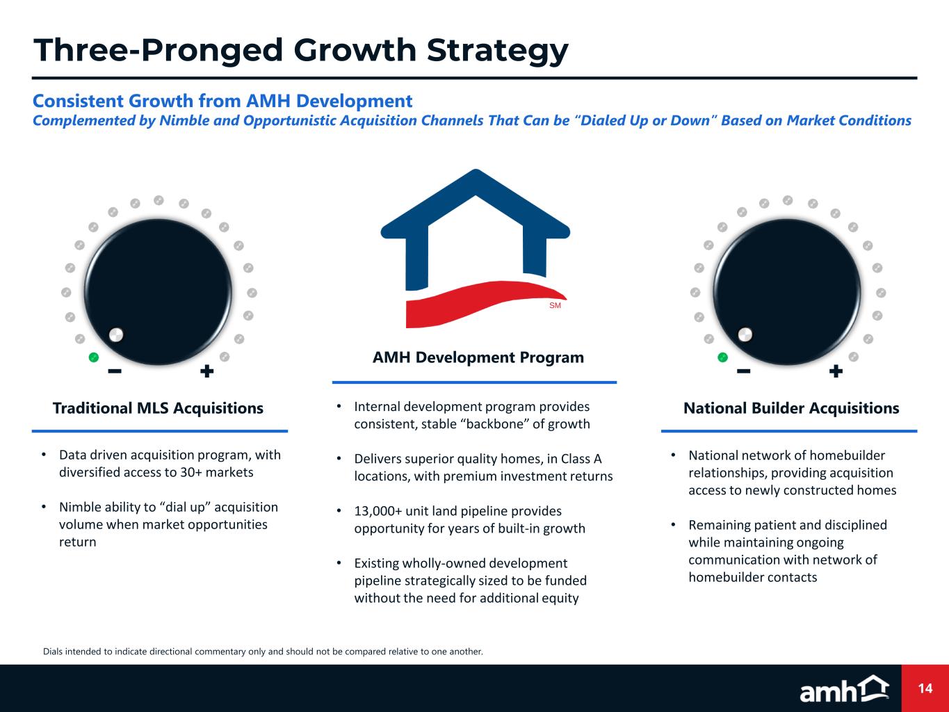 12 AMH vs. the Peer Set (1) Source: Company Disclosure. Includes growth in 2021, 2022, and implied growth for midpoint of 2023 Core FFO per share guidance, unless not provided. (2) Source: S&P Global. Data is from 11/6/20 through 11/6/23. (3) Sources: Company Disclosure; John Burns Real Estate Consulting, LLC., S&P Capital IQ, U.S. Census Bureau 26.4% 20.9% 18.6% 18.1% 8.6% 7.7% 3.4% 0.7% AVB AMH INVH EQR MAA UDR ESS CPT 3-Year Total Return(2) 12.5% 12.4% 11.6% 11.4% 6.9% 6.6% 5.4% 5.1% AMH MAA CPT INVH AVB UDR ESS EQR 3-Year Core FFO Growth CAGR(1) (Midpoint of Guidance) 1.4% 1.2% 1.2% 0.9% 0.6% -0.1% -0.1% -0.3% MAA AMH CPT INVH UDR EQR AVB ESS Est. 2024 YoY Population Growth(3) 0.6% 0.5% 0.5% 0.5% 0.5% 0.4% 0.3% 0.1% MAA AMH UDR CPT INVH EQR AVB ESS Est. 2024 YoY Employment Growth(3)