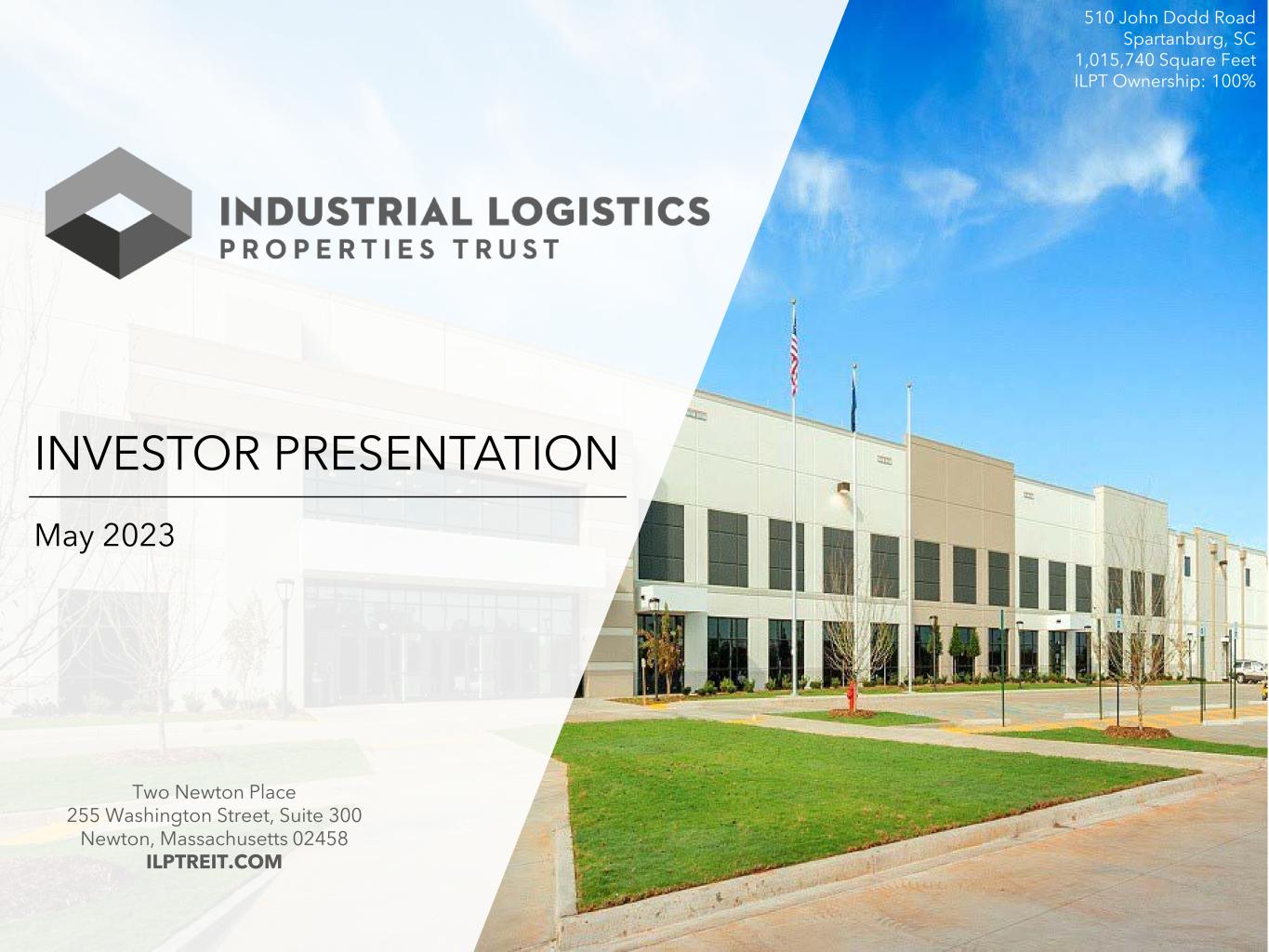 INDUSTRIAL LOGISTICS PROPERTIES TRUST May 2023 INVESTOR PRESENTATION Two Newton Place 255 Washington Street, Suite 300 Newton, Massachusetts 02458 ILPTREIT.COM 510 John Dodd Road Spartanburg, SC 1,015,740 Square Feet ILPT Ownership: 100%