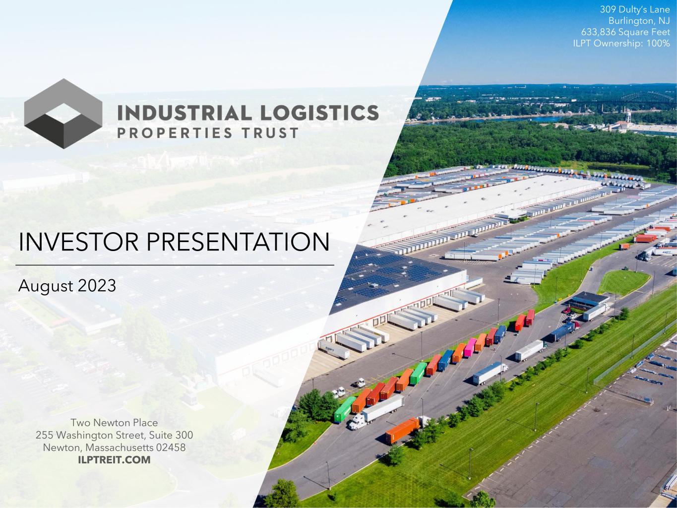 INDUSTRIAL LOGISTICS PROPERTIES TRUST August 2023 INVESTOR PRESENTATION Two Newton Place 255 Washington Street, Suite 300 Newton, Massachusetts 02458 ILPTREIT.COM 309 Dulty’s Lane Burlington, NJ 633,836 Square Feet ILPT Ownership: 100%