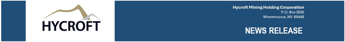 WINNEMUCCA, NV, March 5, 2025 – Hycroft Mining Holding Corporation (Nasdaq: HYMC) (“Hycroft” or the “Company”) announces 2024 full year results and filing of its Form 10-K.