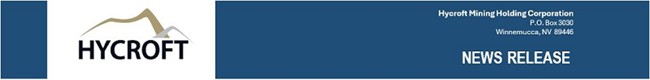 HYCROFT ANNOUNCES EXERCISE OF UNDERWRITERS’ OVER-ALLOTMENT OPTION