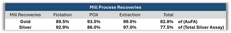 Metallurgy Demonstrates Robust Recoveries (83% gold, 78% silver)