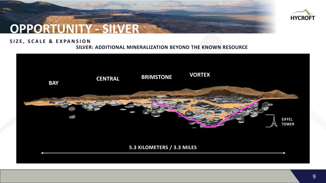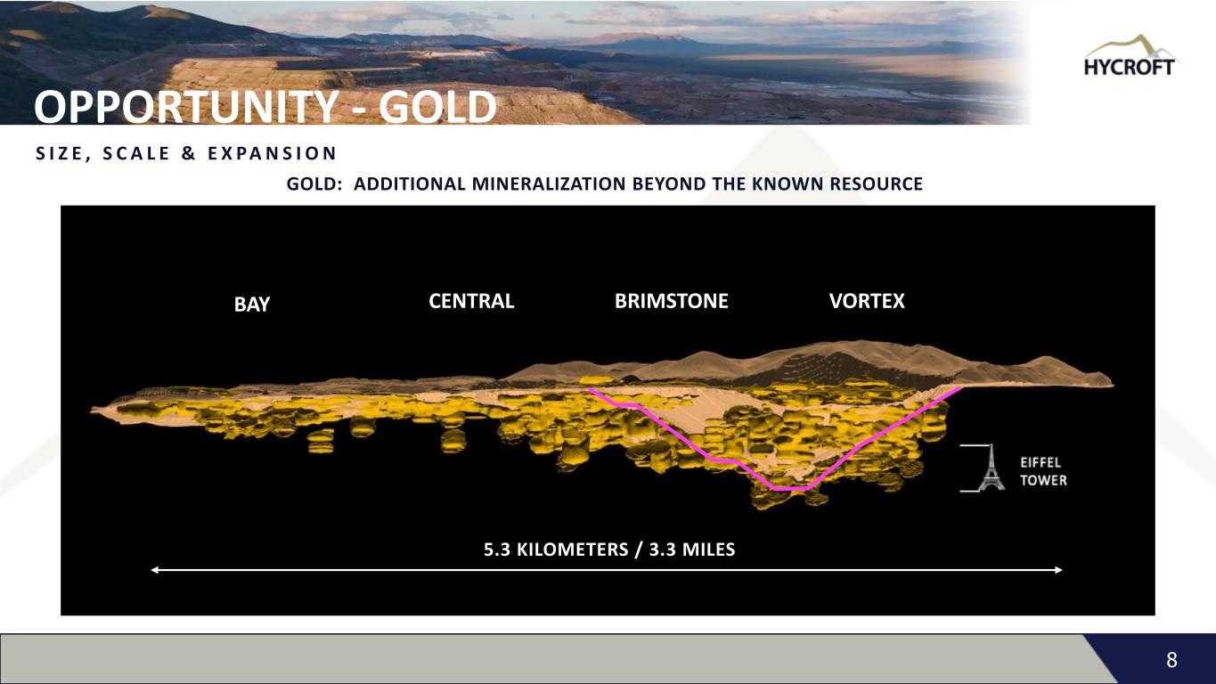 OPPORTUNITY - GOLD S I Z E , S C A L E & E X P A N S I O N GOLD: ADDITIONAL MINERALIZATION BEYOND THE KNOWN RESOURCE VORTEXBRIMSTONECENTRALBAY 5.3 KILOMETERS / 3.3 MILES 8