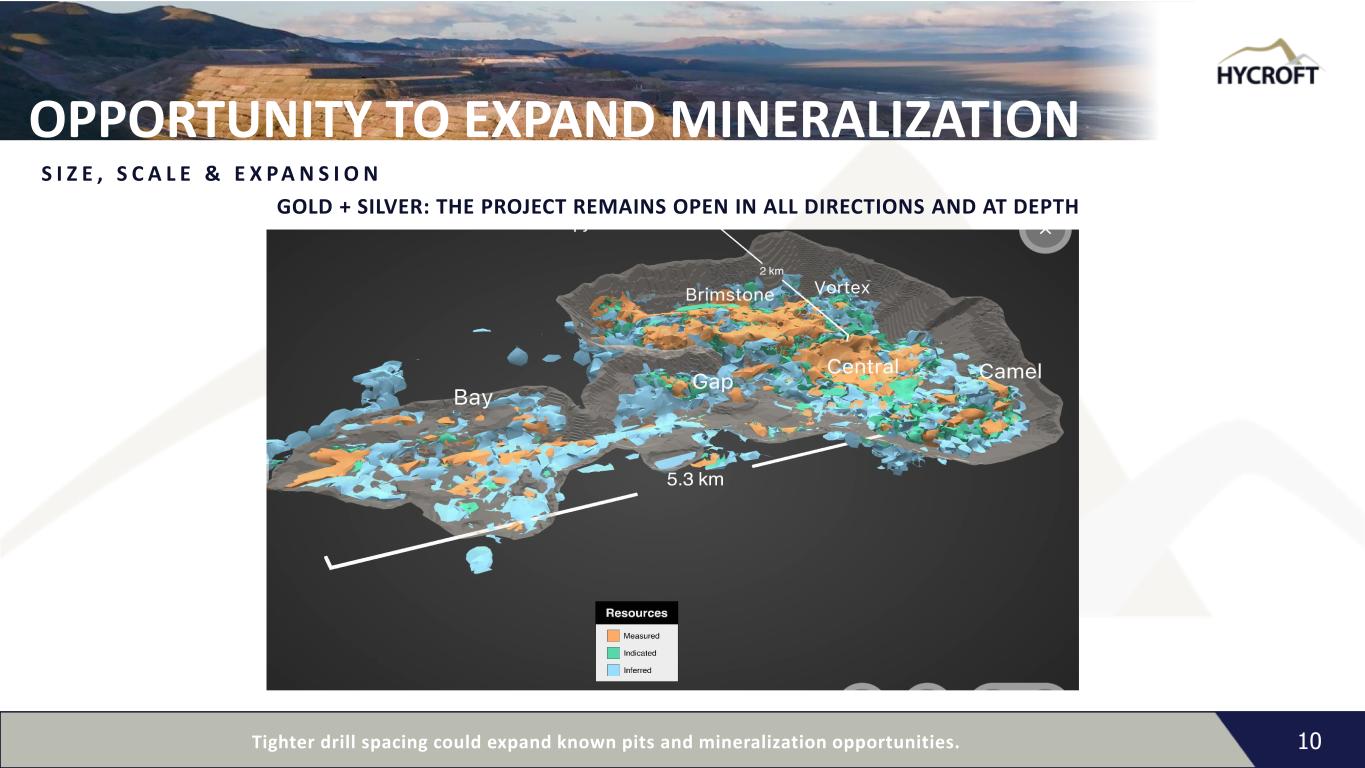 OPPORTUNITY - SILVER S I Z E , S C A L E & E X P A N S I O N SILVER: ADDITIONAL MINERALIZATION BEYOND THE KNOWN RESOURCE VORTEXBRIMSTONECENTRAL BAY 5.3 KILOMETERS / 3.3 MILES 9