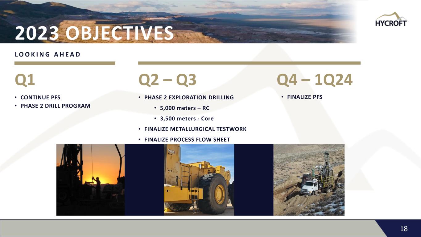 NUMEROUS TARGETS TO EXPLORE S I Z E , S C A L E , & E X P A N S I O N Land Size Hycroft property is larger than Manhattan with numerous exploration targets 〉 Land Position Significant land position - less than 10% has been explored Rosebud Mine1 Close proximity to the past- producing, high-grade Rosebud Mine High-Grade Intercepts High-grade intercepts identified within and beyond the known resource M A N H A T TA N 1Information regarding the Rosebud Mine is not necessarily indicative of the mineralization on the Hycroft property that is the subject of the March 27, 2023 Hycroft Technical Report Summary and Hycroft can provide no assurance that mineralization at the Rosebud Mine will be consistent with the Hycroft property. 17