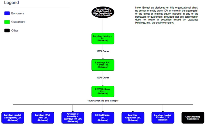 LD REAL ESTATE, LLC, LAZYDAYS RV OF OHIO, LLC, AIRSTREAM OF KNOXVILLE AT LAZYDAYS RV, LLC, LONE STAR ACQUISITION LLC, LAZYDAYS LAND OF PHOENIX, LLC, and LAZYDAYS LAND OF CHICAGOLAND, LLC,