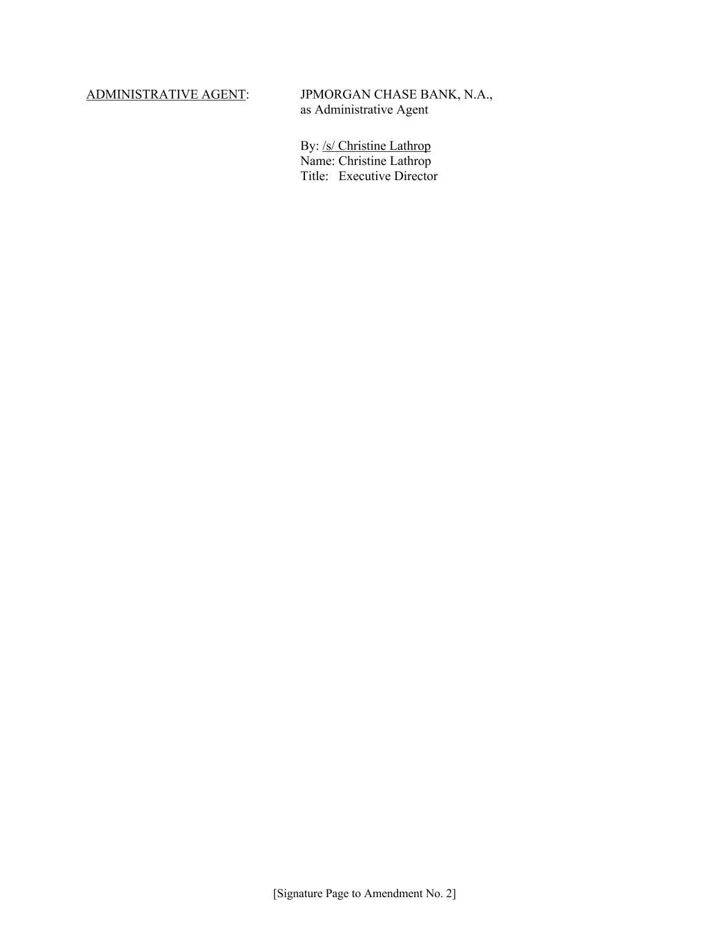 [Signature Page to Amendment No. 2] ADMINISTRATIVE AGENT: JPMORGAN CHASE BANK, N.A., as Administrative Agent By: /s/ Christine Lathrop Name: Christine Lathrop Title: Executive Director