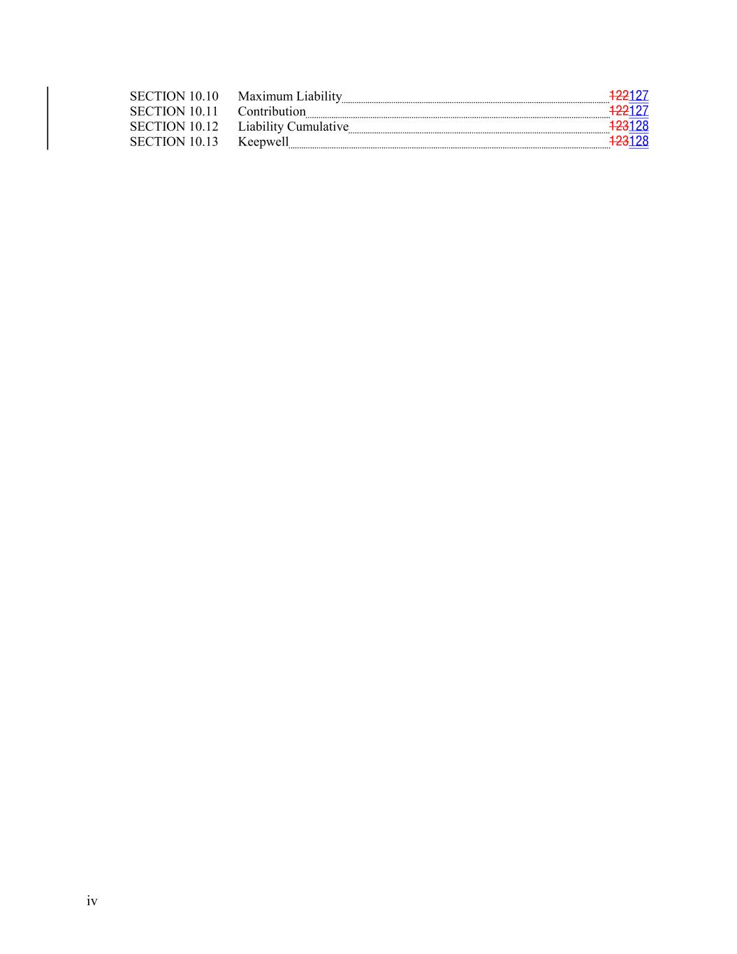 SECTION 10.10 Maximum Liability 122127 SECTION 10.11 Contribution 122127 SECTION 10.12 Liability Cumulative 123128 SECTION 10.13 Keepwell 123128 iv