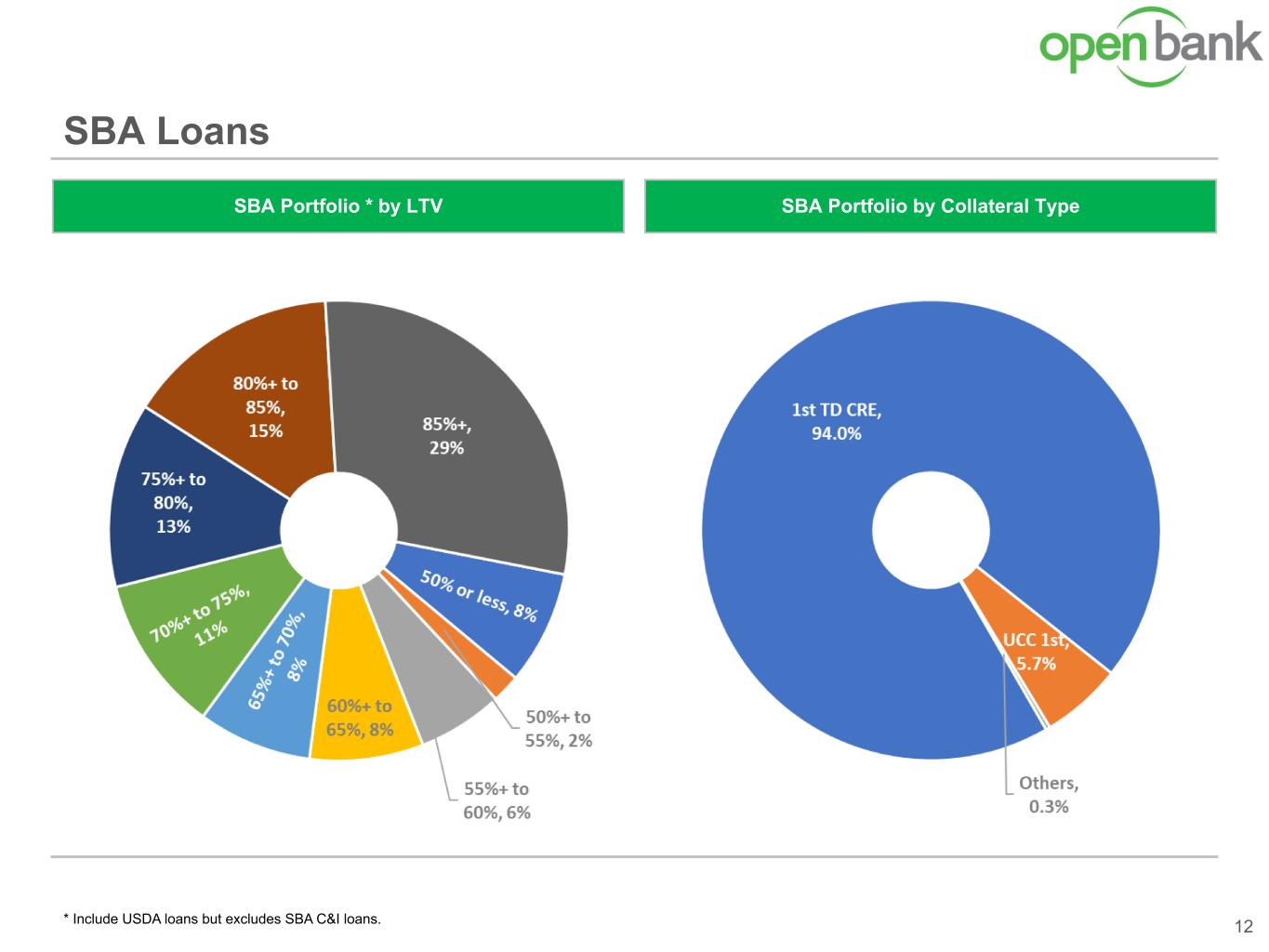 * Include USDA loans but excludes SBA C&I loans. SBA Loans 12 SBA Portfolio by Collateral TypeSBA Portfolio * by LTV