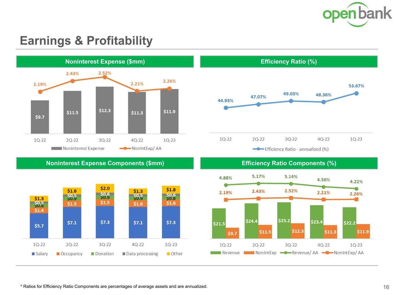 Earnings & Profitability 15 Noninterest Income ($mm)Net Interest Income ($mm) & Net Interest Margin (%) Interest Income & Interest Expense ($mm) Noninterest Income Components ($mm) * Ratios for interest income & interest expense are percentages of average assets and are annualized.