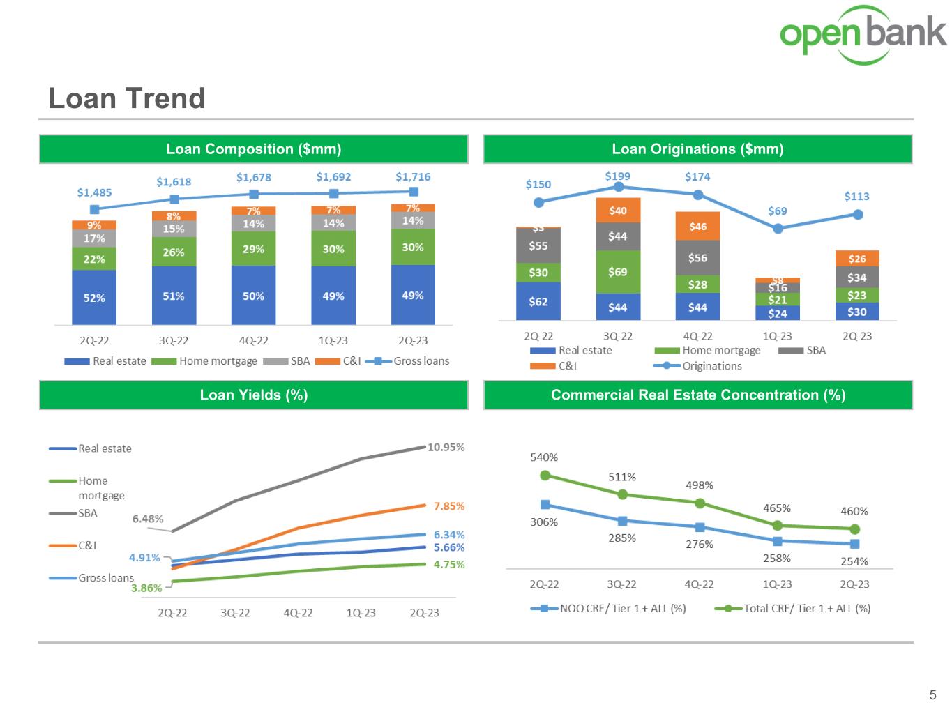 Loan Trend 5 Loan Originations ($mm)Loan Composition ($mm) Loan Yields (%) Commercial Real Estate Concentration (%)