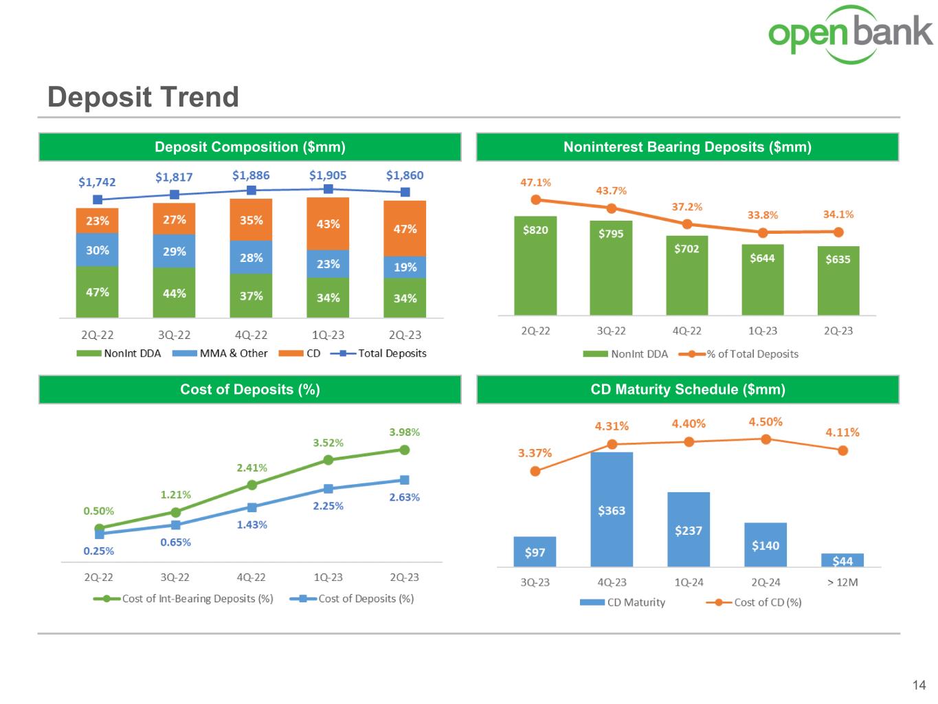 Deposit Trend 14 Noninterest Bearing Deposits ($mm)Deposit Composition ($mm) Cost of Deposits (%) CD Maturity Schedule ($mm)