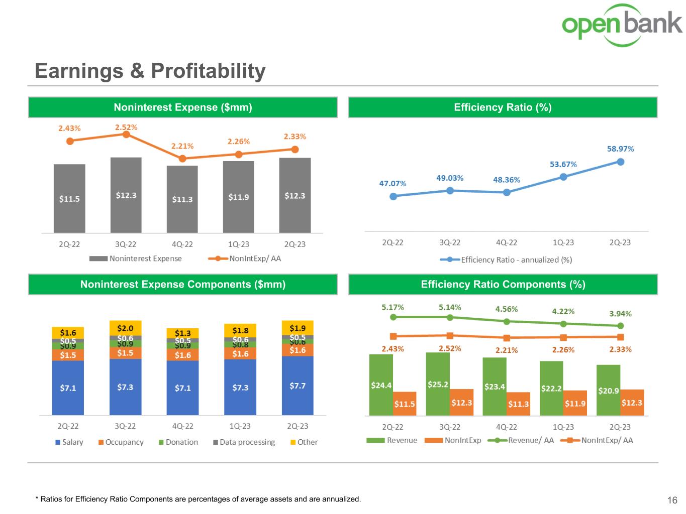 Earnings & Profitability 15 Noninterest Income ($mm)Net Interest Income ($mm) & Net Interest Margin (%) Interest Income & Interest Expense ($mm) Noninterest Income Components ($mm) * Ratios for interest income & interest expense are percentages of average assets and are annualized.