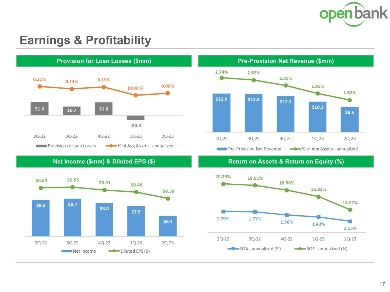 Earnings & Profitability 16 Efficiency Ratio (%)Noninterest Expense ($mm) Noninterest Expense Components ($mm) Efficiency Ratio Components (%) * Ratios for Efficiency Ratio Components are percentages of average assets and are annualized.