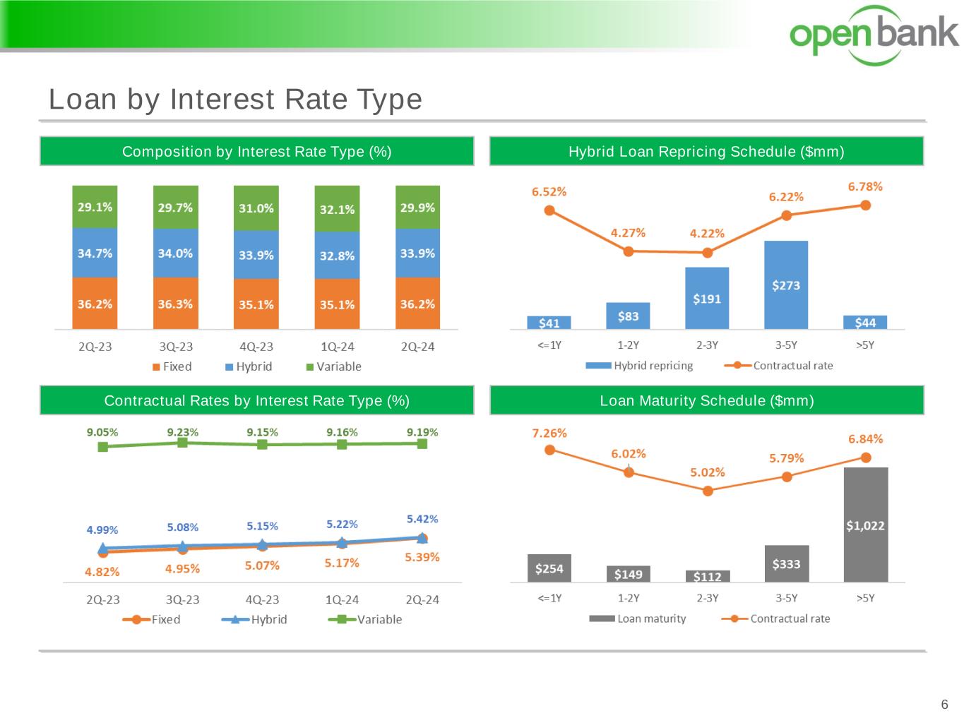 Loan by Interest Rate Type 6 Hybrid Loan Repricing Schedule ($mm)Composition by Interest Rate Type (%) Contractual Rates by Interest Rate Type (%) Loan Maturity Schedule ($mm)