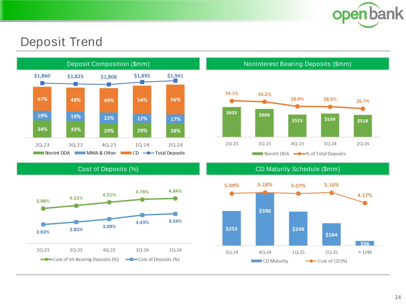 Deposit Trend 14 Noninterest Bearing Deposits ($mm)Deposit Composition ($mm) Cost of Deposits (%) CD Maturity Schedule ($mm)