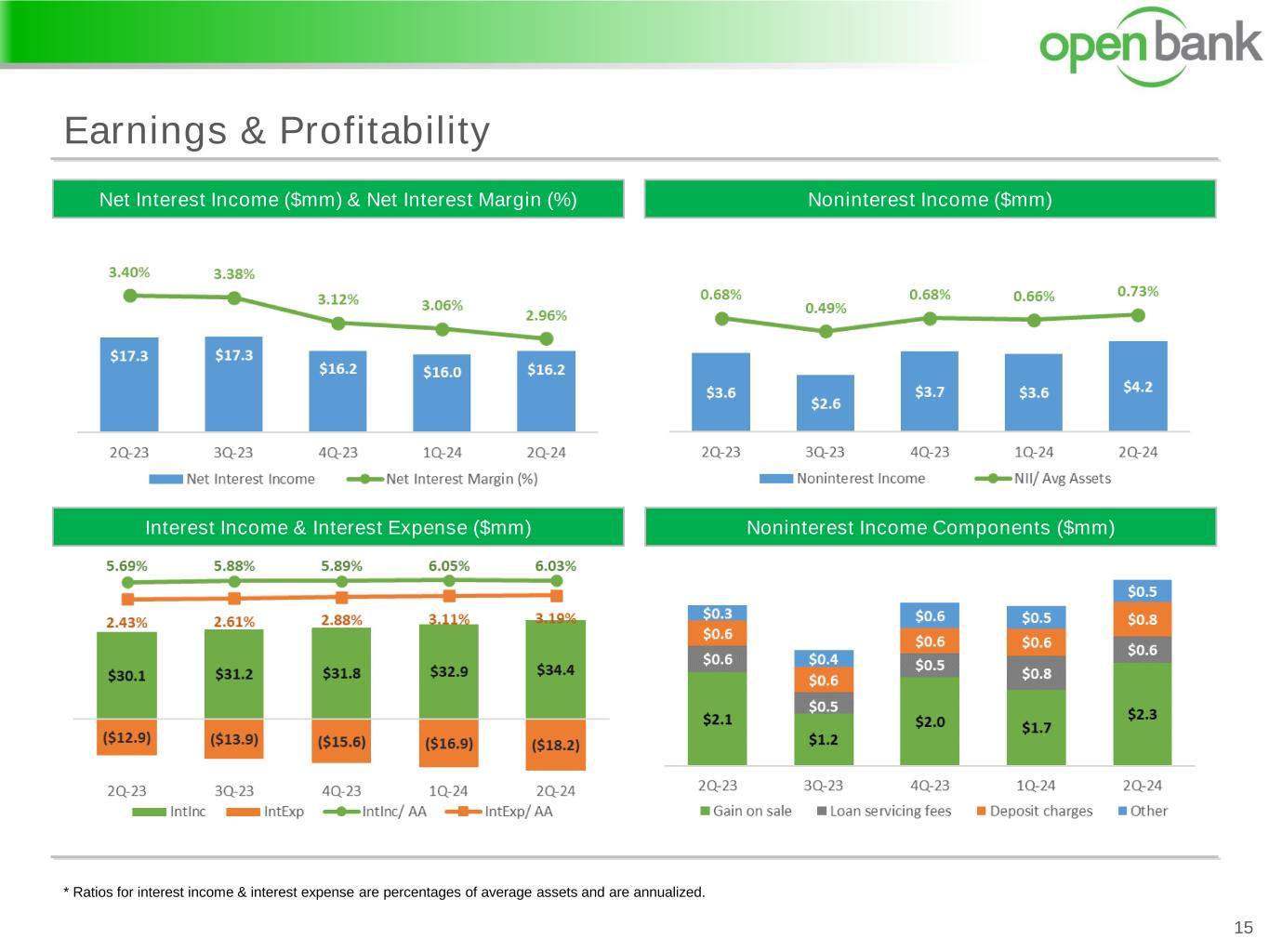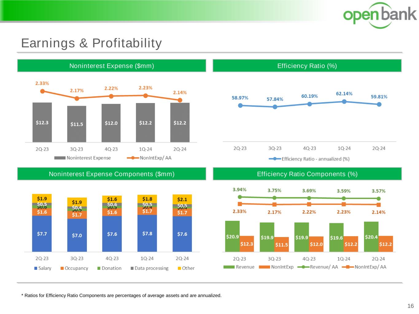 Earnings & Profitability 15 Noninterest Income ($mm)Net Interest Income ($mm) & Net Interest Margin (%) Interest Income & Interest Expense ($mm) Noninterest Income Components ($mm) * Ratios for interest income & interest expense are percentages of average assets and are annualized.