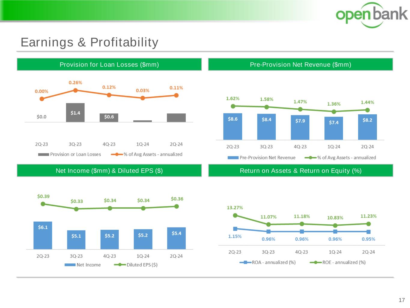 Earnings & Profitability 16 Efficiency Ratio (%)Noninterest Expense ($mm) Noninterest Expense Components ($mm) Efficiency Ratio Components (%) * Ratios for Efficiency Ratio Components are percentages of average assets and are annualized.