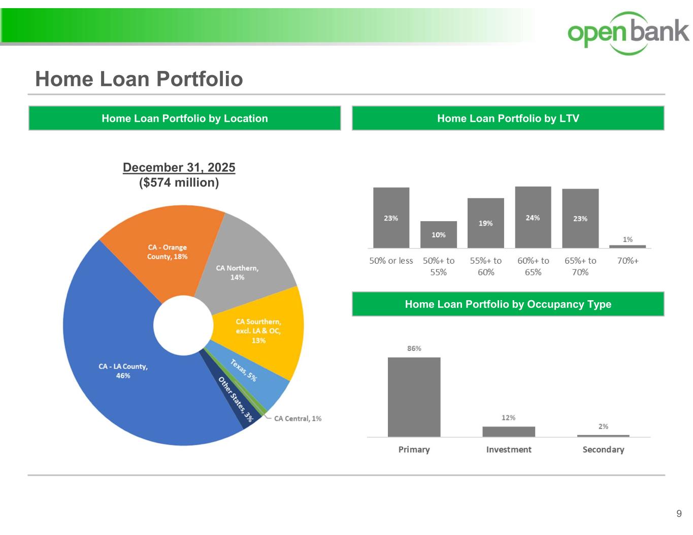 Home Loan Portfolio 9 Home Loan Portfolio by LTVHome Loan Portfolio by Location Home Loan Portfolio by Occupancy Type December 31, 2025 ($574 million)