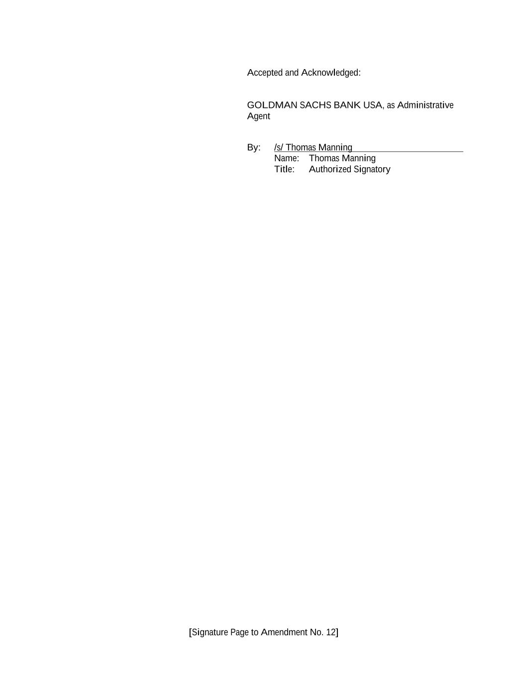 [Signature Page to Amendment No. 12] Accepted and Acknowledged: GOLDMAN SACHS BANK USA, as Administrative Agent By: /s/ Thomas Manning Name: Thomas Manning Title: Authorized Signatory