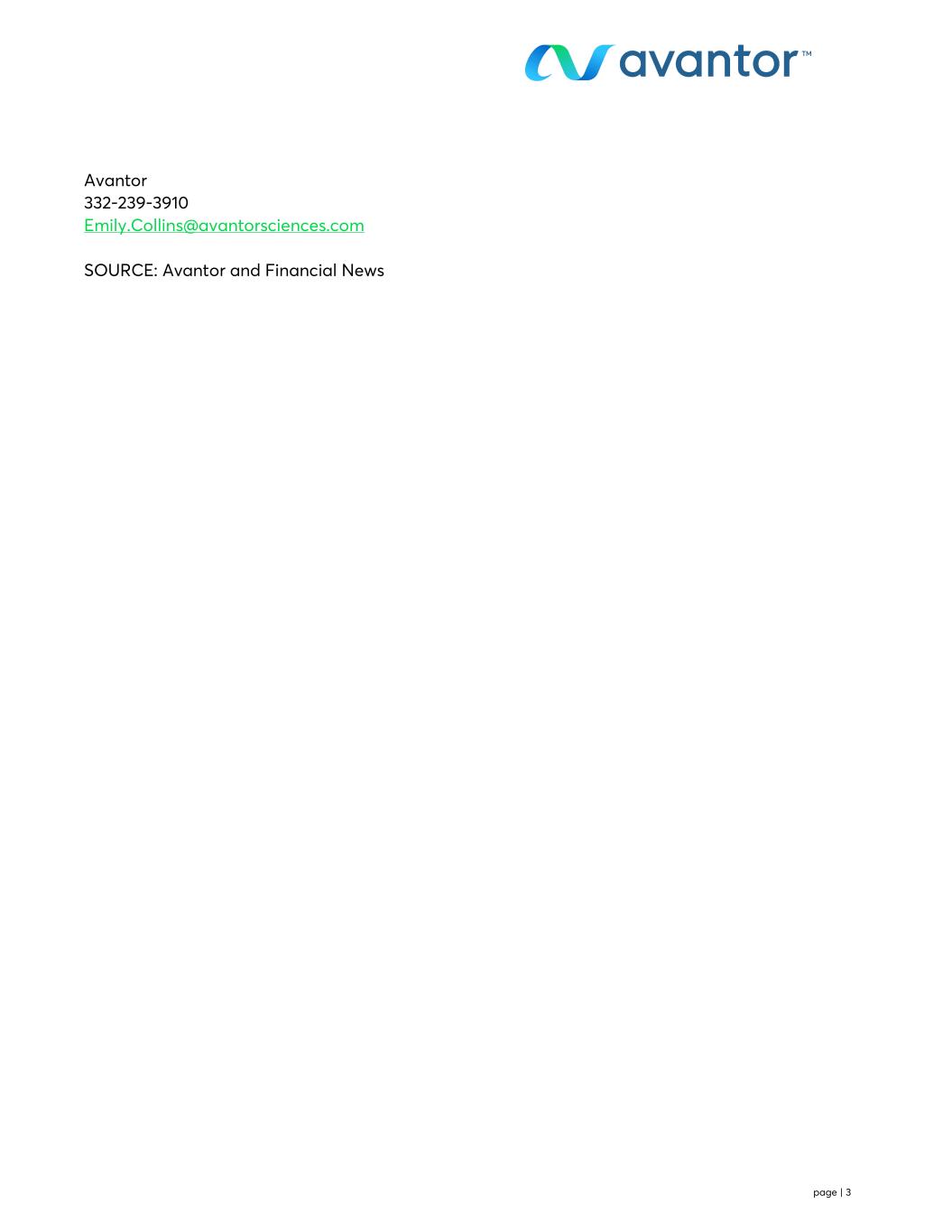 page | 3 Avantor 332-239-3910 Emily.Collins@avantorsciences.com SOURCE: Avantor and Financial News